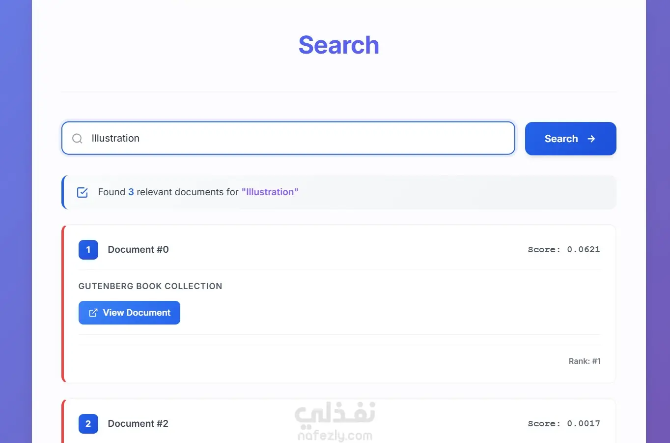 The platform uses the TF-IDF (Term Frequency–Inverse Document Frequency) algorithm to analyze and rank search results based on their relevance to the user’s query. This ensures that the most meaningful and related results appear first.