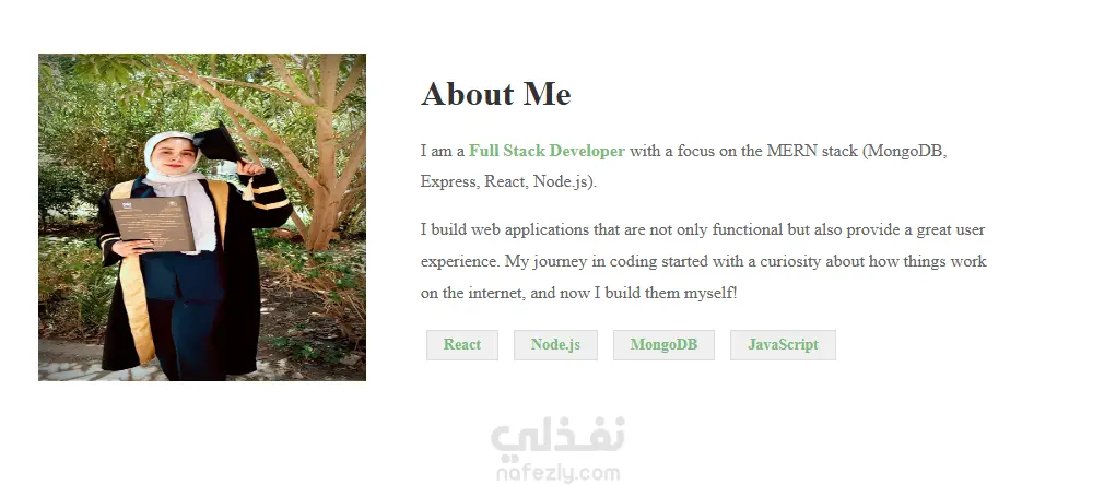 قسم About يحتوي على نبذة عنك ومهاراتك وخبراتك.