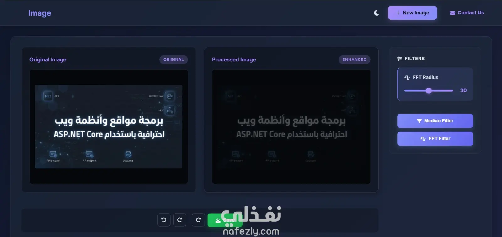 2️⃣ Work Description ImageLab is a simple and efficient web-based application designed for removing noise from images using modern image processing techniques. The platform provides a clean and user-friendly interface that allows users to upload and enhance their images بسهولة. The system supports multiple image formats including PNG, JPG, JPEG, GIF, and WebP, with a maximum file size of 16MB. Users can upload images عبر السحب والإفلات أو من خلال زر الرفع. The application includes two powerful noise reduction techniques: Median Filter: Used to remove salt-and-pepper noise with adjustable kernel size (3–21), where larger sizes result in stronger noise reduction. FFT (Fast Fourier Transform): Applied to remove periodic noise in the frequency domain, with adjustable radius control for more precise filtering. Users can view a side-by-side comparison between the original and processed images, allowing instant evaluation of the results. The platform also enables users to download the processed image in PNG format or reset to the original image at any time. The project is built using: Frontend: HTML5, CSS3, Vanilla JavaScript Backend: Python with Flask Image Processing: OpenCV and NumPy Overall, ImageLab provides a practical and easy-to-use solution for improving image quality directly through the browser. 🚀