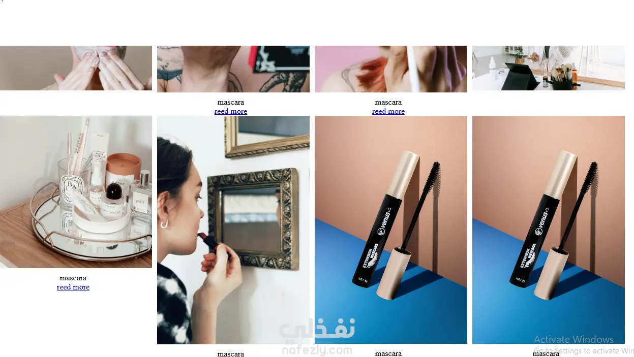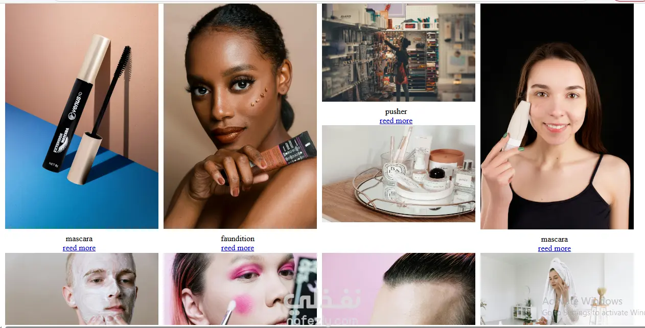 الواجهة مصممة لتناسب متاجر مستحضرات التجميل حيث تم الاهتمام بالتفاصيل البصرية، وتنظيم عرض المنتجات بطريقة تساعد المستخدم على استكشاف المنتجات بسهولة.