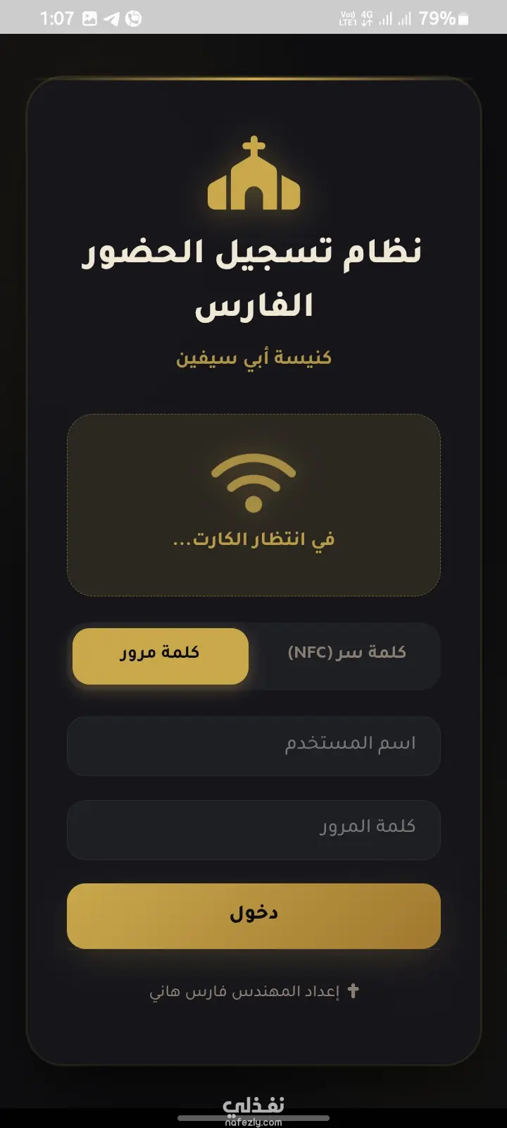 تم تصميم وتطوير نظام متكامل لتسجيل حضور الأعضاء في الخدمات الكنسية باستخدام تقنية NFC (الاتصال قريب المدى)، وهي تقنية تتيح تبادل البيانات بين جهاز القارئ والبطاقة أو الميدالية أو الشيفرة الإلكترونية عند تقاربها لمسافة قصيرة جدًا. كل عضو أو مشارك يحصل على بطاقة أو ميدالية أو شيفرة NFC خاصة به، وعند وصوله إلى مكان الخدمة وقربه من جهاز القارئ، يقوم النظام تلقائيًا بالتعرف على هويته وتسجيل حضوره بشكل فوري ودقيق في قاعدة البيانات. هذه العملية تتم خلال ثوانٍ قليلة، بدون الحاجة إلى توقيع يدوي أو إدخال بيانات، مما يقلل من الأخطاء ويوفر الوقت والجهد على المسؤولين عن المتابعة. بالإضافة إلى تسجيل الحضور، يتيح النظام إمكانية: إصدار تقارير دقيقة عن حضور كل عضو على مدار الوقت. متابعة انتظام الحضور للأعضاء بشكل أسبوعي أو شهري. إدارة بيانات الأعضاء وربطها بالأنشطة والخدمات المختلفة بسهولة. زيادة الأمن والخصوصية، حيث أن كل بطاقة أو شيفرة مخصصة لشخص واحد ولا يمكن التلاعب بها. باختصار، هذا النظام يدمج التكنولوجيا الحديثة مع التنظيم الكنسي لتسهيل عملية الحضور، تحسين الإدارة، وتقديم تجربة سلسة وفعالة لكل من المسؤولين والأعضاء.