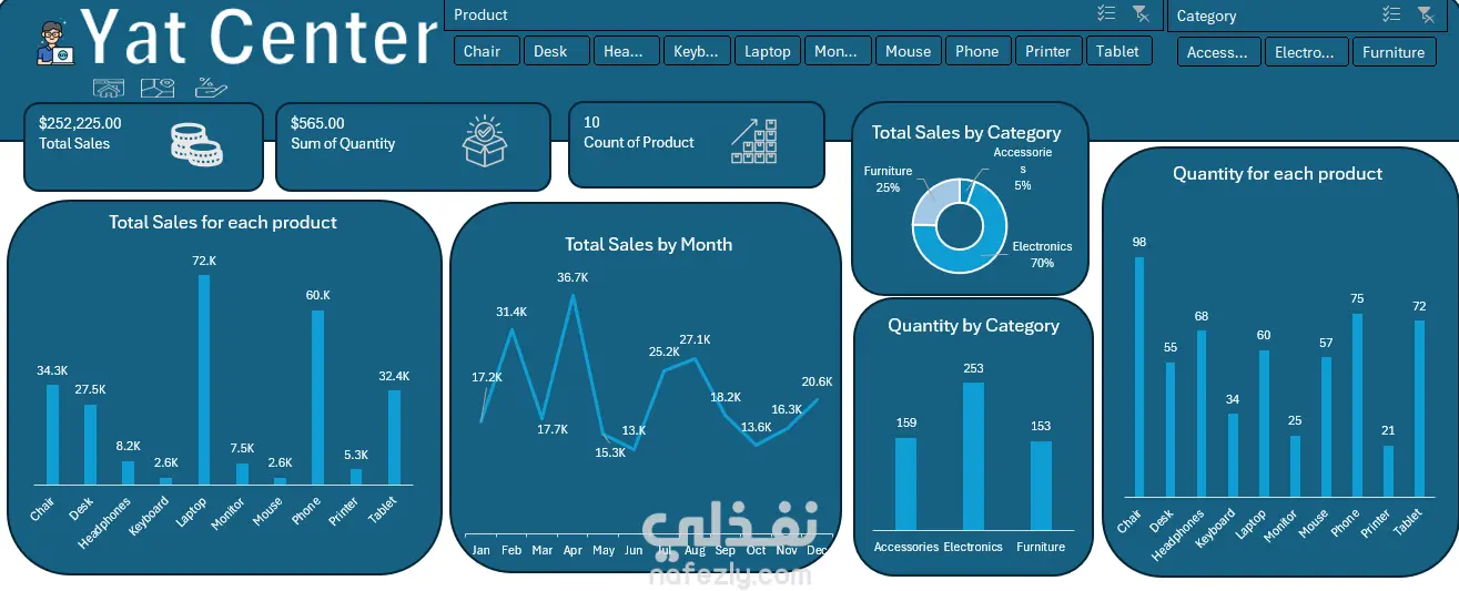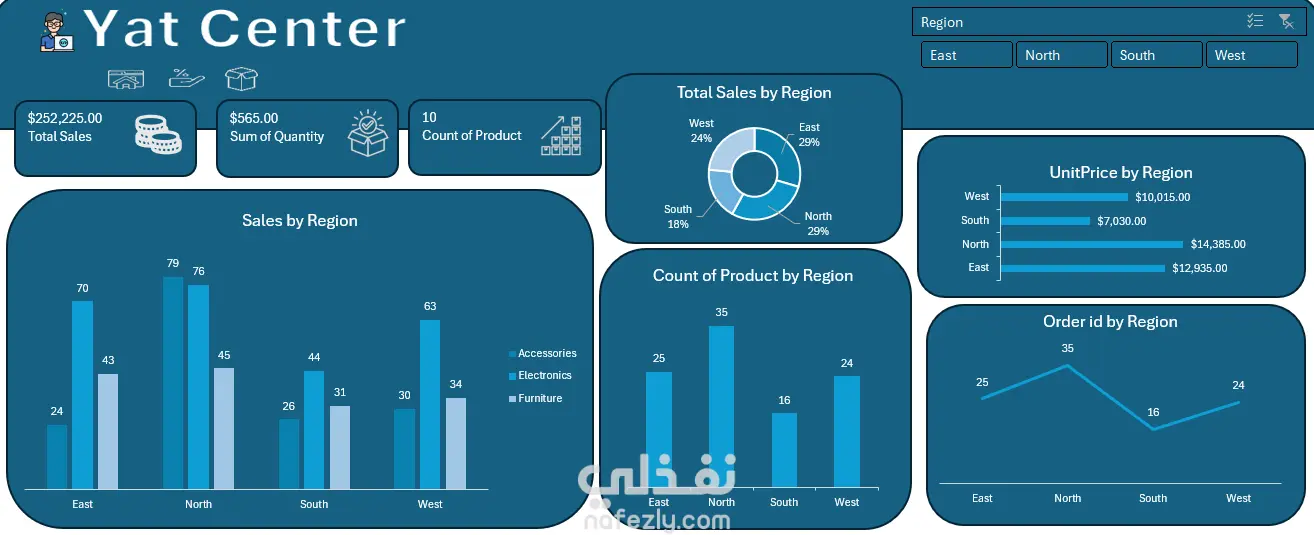 تحويل بيانات المبيعات الخام لمركز "Yat Center" (بقيمة تجاوزت 250 ألف دولار) إلى نظام ذكاء أعمال متكامل باستخدام Microsoft Excel فقط، معتمداً على أدواته المتقدمة لضمان دقة البيانات وسهولة عرضها. المهام المنفذة في المشروع: Data Cleaning & Prep: تنظيف البيانات وهيكلتها باستخدام Power Query لضمان دقة النتائج بنسبة 100% ومعالجة أي تناقضات. Deep Analysis: استخدام الـ Pivot Tables المتقدمة لاستخراج العلاقات بين المناطق الجغرافية، أداء المناديب، وتصنيفات المنتجات. Interactive Dashboard: تصميم لوحة تحكم ديناميكية في إكسل تشمل: تحليل الأقاليم: كشف سيطرة منطقتي الشمال والشرق على 58% من إجمالي المبيعات. أداء المبيعات: تتبع كفاءة الفريق وتحليل العلاقة بين عدد الطلبات والإيرادات المحققة. رؤى المنتجات: تحليل مبيعات 565 وحدة، حيث تصدرت الإلكترونيات بنسبة 70% من حجم العمل. User Experience (UX): ابتكار واجهة مستخدم (Main Menu) وأزرار تنقل تفاعلية (Slicers) لسهولة التصفح بين التقارير داخل الملف. الأدوات المستخدمة: Advanced Excel | Power Query | Pivot Tables | Data Visualization.