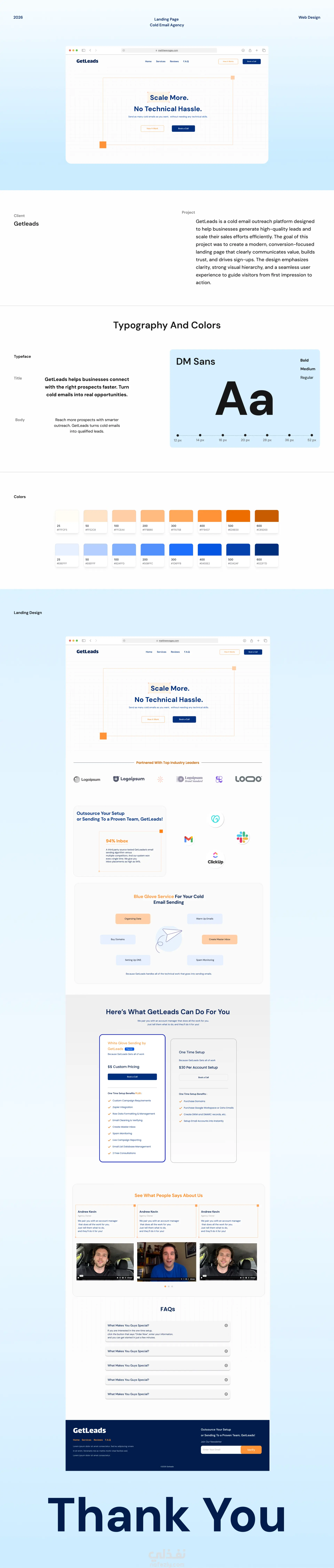 هذا المشروع عبارة عن تصميم صفحة هبوط لوكالة متخصصة في خدمات التواصل عبر البريد الإلكتروني بهدف جذب العملاء المحتملين وتحويل الزوار إلى عملاء. يركز التصميم على تقديم واجهة واضحة وجذابة تشرح خدمات الوكالة بطريقة بسيطة ومنظمة، مع إبراز قيمة الخدمة وإقناع الزائر بالتواصل أو طلب الخدمة. مميزات التصميم: -تصميم بسيط وحديث يركز على تحقيق التحويلات -تنظيم المحتوى بشكل واضح لشرح الخدمات والمميزات -استخدام أقسام مخصصة مثل عرض الخدمات، النتائج، التسعير, وآراء العملاءز -تصميم متجاوب يعمل بكفاءة على جميع الأجهزة طريقة التنفيذ: تم البدء بتحليل هدف الصفحة والجمهور المستهدف، ثم تصميم هيكل الصفحة والمخططات الأولية، وبعد ذلك تنفيذ التصميم النهائي مع إنشاء نموذج تفاعلي يوضح تجربة المستخدم داخل الصفحة.