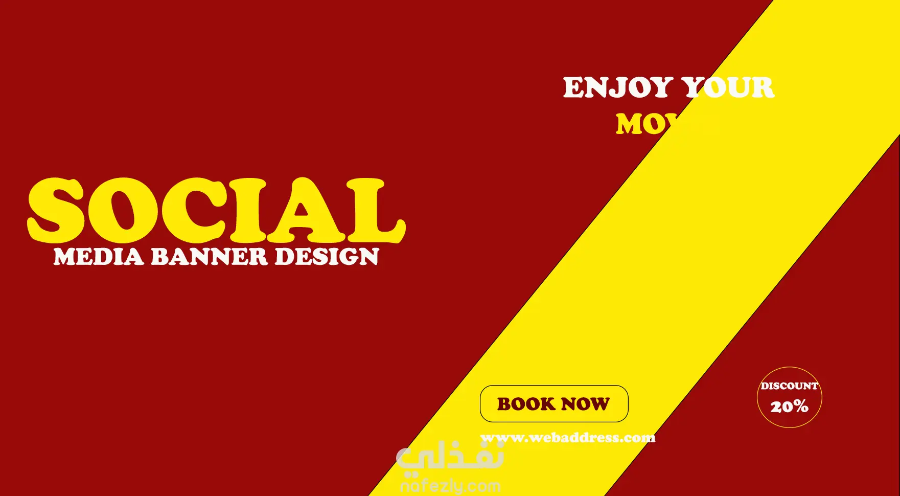 تصميم عالي الطاقة مخصص لمنصات التواصل الاجتماعي يهدف إلى زيادة حجوزات التذاكر عبر استخدام عناصر بصرية بارزة.