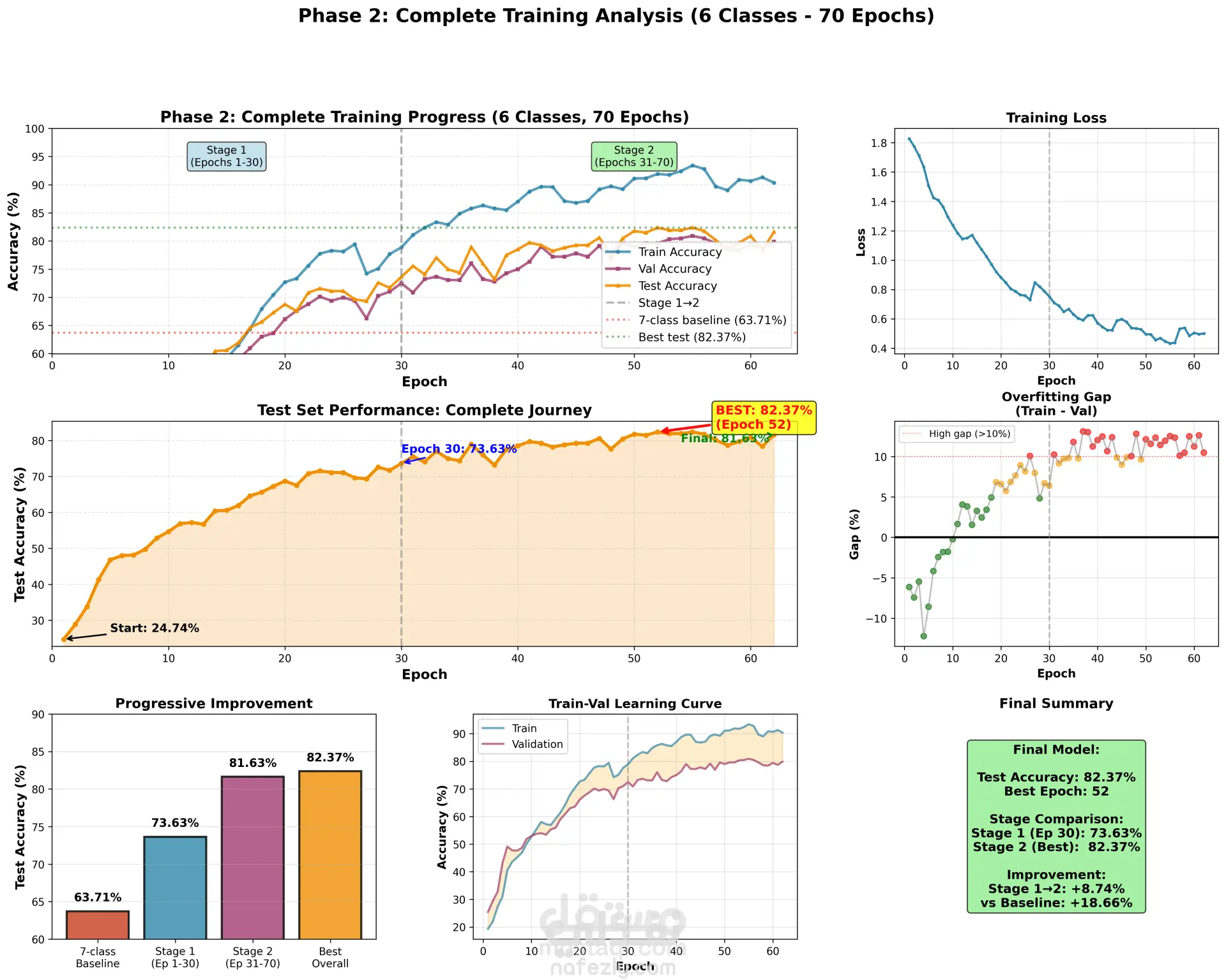 تم تنفيذ هذا المشروع لتطوير نظام ذكي يعتمد على التعلّم العميق وتحليل الصوت لتصنيف أسباب بكاء الأطفال ومساعدة الأهالي على فهم احتياجات الطفل بشكل أدق. تمت معالجة البيانات الصوتية وتنفيذ مراحل متقدمة من Audio Preprocessing، ثم استخدام نموذج Transformer مع Transfer Learning لاستخراج الخصائص الصوتية وتدريب نموذج تصنيف قادر على التمييز بين عدة حالات مثل: ألم البطن، الحاجة للتجشؤ، الشعور بالبرد أو الحرارة، الانزعاج، الخوف، والتعب. تم تحسين أداء النموذج باستخدام Data Augmentation وFine-Tuning لتحقيق نتائج دقيقة وقابلة للاستخدام العملي. في المرحلة النهائية، تم ربط النموذج بتطبيق موبايل يتيح للمستخدم تسجيل صوت بكاء الطفل، إرساله للنظام، والحصول على النتيجة بشكل فوري مع درجة ثقة. المشروع يوضح خبرتي في: معالجة الصوت والذكاء الاصطناعي نماذج التعلّم العميق ربط نماذج الذكاء الاصطناعي بتطبيقات الموبايل