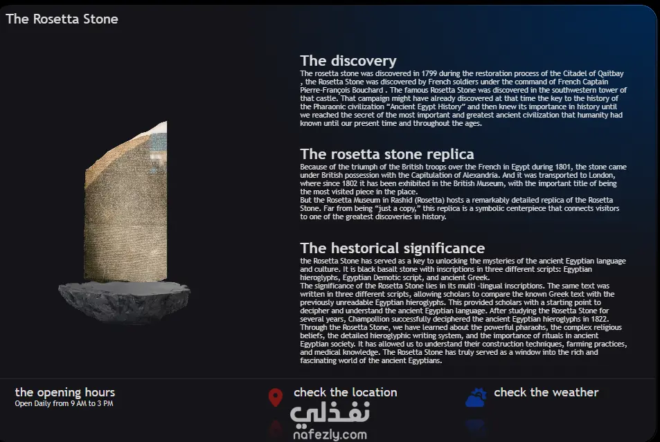 التفاعل والأنيميشن: قمت بتنفيذ حركات تفاعلية (Interactive Animations) مخصصة، مما أضفى طابعاً عصرياً يجعل استكشاف المعالم التاريخية تجربة ممتعة وغير تقليدية.
