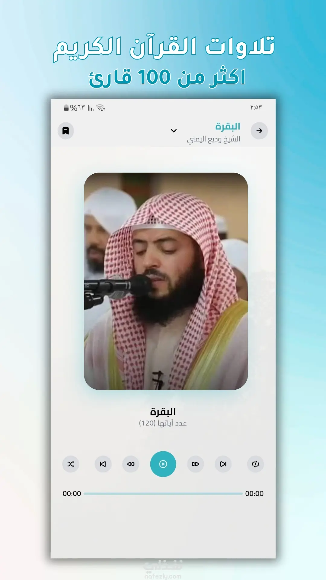 التلاوات الصوتية: الاستماع إلى تلاوات قرآنية بصوت عدد كبير من القرّاء.