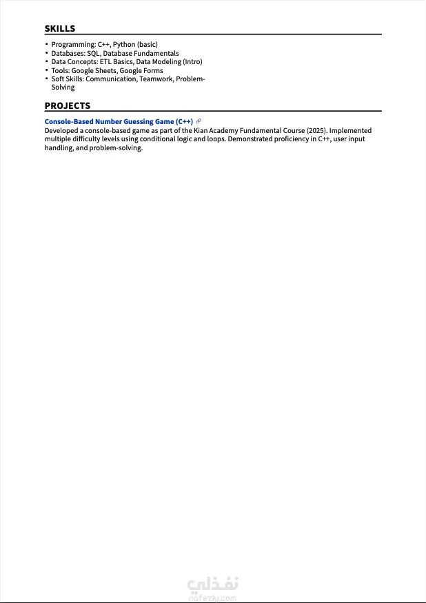 هل تبحث عن سيرة ذاتية احترافية تزيد فرص قبولك في الوظائف؟ أقدم لك خدمة تصميم وكتابة سيرة ذاتية (CV) باللغة العربية أو الإنجليزية بطريقة احترافية ومتوافقة مع أنظمة التوظيف (ATS)، لضمان ظهور سيرتك الذاتية بشكل مميز أمام مسؤولي التوظيف. ماذا ستحصل عليه: ✔ سيرة ذاتية احترافية باللغة العربية أو الإنجليزية ✔ تصميم عصري ونظيف وسهل القراءة ✔ متوافقة مع أنظمة ATS ✔ إبراز مهاراتك وخبراتك بشكل احترافي ✔ تنظيم وترتيب المحتوى بطريقة جذابة لماذا تختارني؟ ✔ كتابة احترافية خالية من الأخطاء ✔ اختيار كلمات مفتاحية مناسبة لمجالك ✔ خبرة في تحسين السير الذاتية ✔ تسليم سريع واهتمام بالتفاصيل الخدمة مناسبة لـ: ✔ الطلاب والخريجين ✔ الباحثين عن عمل ✔ من يرغب في تحسين سيرته الذاتية جاهز تبدأ؟ تواصل معي الآن وساعدك تحصل على فرصة أفضل.