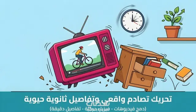 أهلاً بك! أقدم لك خدمة احترافية لدمج الفيديوهات (Compositing) داخل الشاشات المتحركة، مع تطبيق قواعد الفيزياء والتحريك (كالاصطدام والاهتزاز) للعناصر ثنائية الأبعاد لتبدو واقعية. مقابل 5 دولار ستحصل على: دمج مقطع فيديو داخل شاشة متحركة (تلفاز، هاتف، إلخ) لمدة 5 ثوانٍ. إضافة تفاصيل حركية ثانوية للمشهد المحيط لزيادة الواقعية. جودة عالية الدقة FHD 1080p. (مرفق في المعرض نموذج لمحاكاة اصطدام تلفاز مع دمج فيديو داخله بشكل طبيعي).