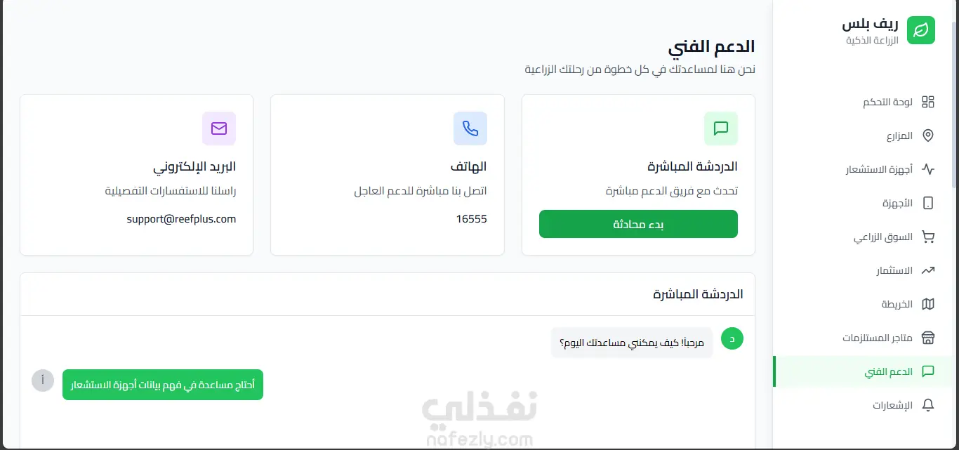 ريف بلس (Reef Plus) هي منصة زراعية ذكية (Agri-Tech SaaS) تعمل كحلقة وصل بين الأرض والتكنولوجيا. المنصة تستقبل البيانات اللحظية من حساسات إنترنت الأشياء (IoT) الموجودة في الحقول، وتقوم بمعالجتها وتحليلها لتعرض للمزارعين ومديري المزارع تقارير دقيقة وقرارات ذكية عبر لوحة تحكم بسيطة، والهدف النهائي هو تحسين إنتاجية المحاصيل وتقليل إهدار الموارد.