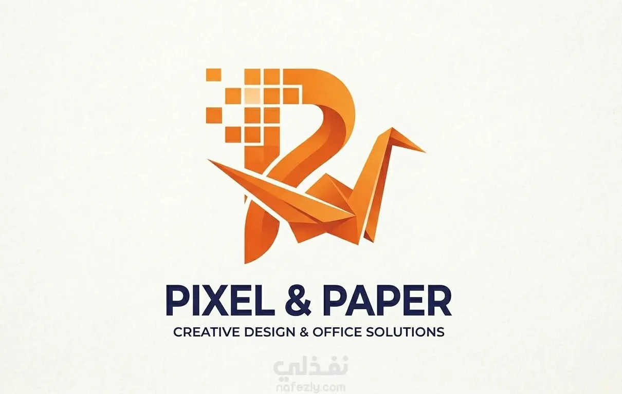 شعار مبتكر لعلامة تجارية وهمية باسم "Pixel & Paper". التصميم يدمج بين مفهوم "البكسل" الذي يعبر عن التصميم الجرافيكي، وشكل "الأوريجامي" الذي يعبر عن الدقة في التعامل مع الأوراق والملفات. تم اختيار اللون البرتقالي لإعطاء طابع حيوي وعصري يجذب الانتباه.