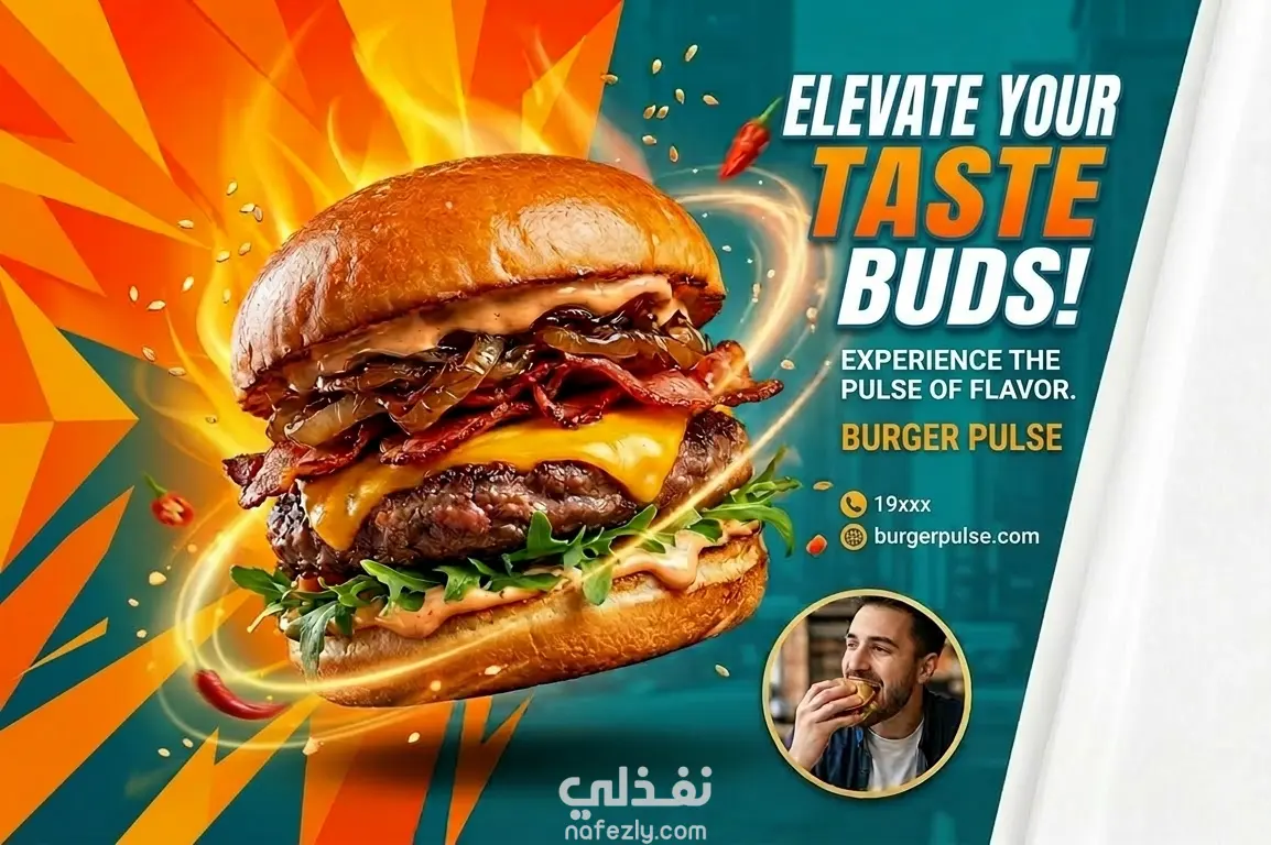 تصميم بوستر إعلاني جذاب لمطعم برجر عصري (سوشيال ميديا)