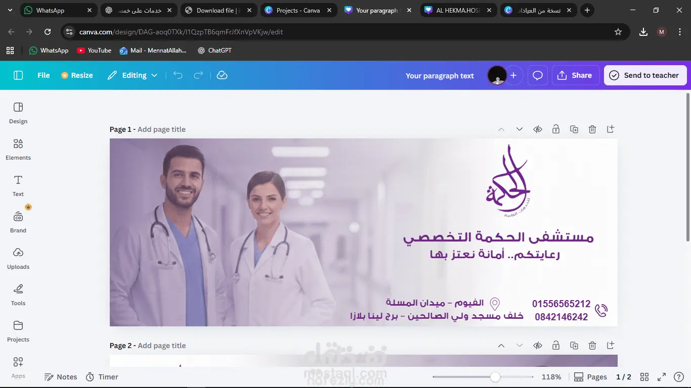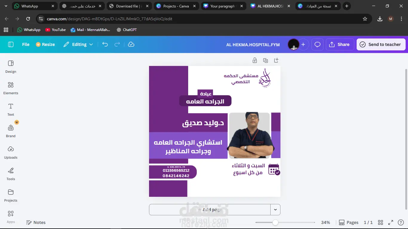 قمتُ بتصميم بوستات سوشيال ميديا بسيطة ومرتبة وجاهزة للنشر باستخدام Canva، مع التركيز على اختيار ألوان مناسبة، خطوط واضحة، وتنسيق بصري جذاب. تفاصيل العمل: – تصميم 2 بوست سوشيال ميديا – المقاسات: 1080×1080 أو 1080×1350 – جودة Full HD – اختيار الألوان والخطوط بما يناسب المحتوى – إضافة أيقونات أو صور بسيطة – تسليم الملفات بصيغة PNG – توفير رابط Canva قابل للتعديل الهدف كان إخراج بوستات أنيقة وسهلة الاستخدام تناسب النشر المباشر على منصات التواصل الاجتماعي.