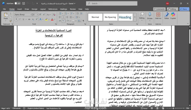 تنسيق ملف Word احترافي وجاهز للطباعة أو التسليم النهائي