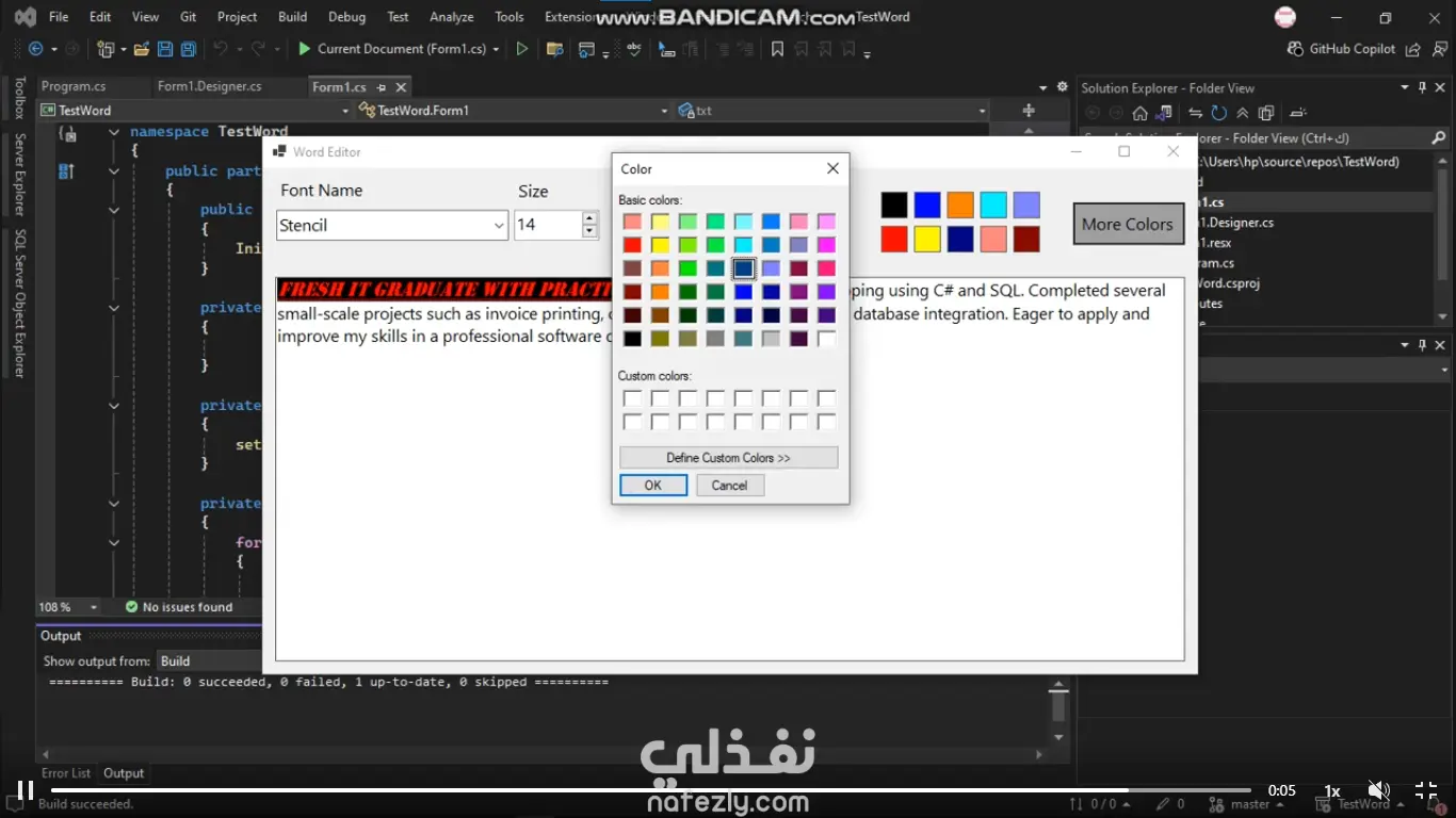 A simple text editor project developed using Windows Forms in C#. It allows users to control the font type, size, and styles such as Bold, Italic, and Underline, in addition to the ability to change the text or background color.