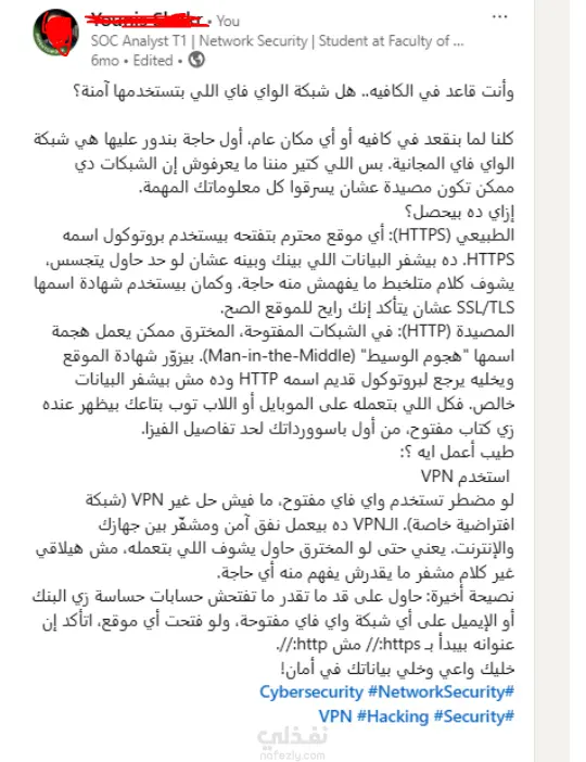 كتابه ومراجعة منشور متخصص في مجال الامن السيبراني وتصميم صورة له