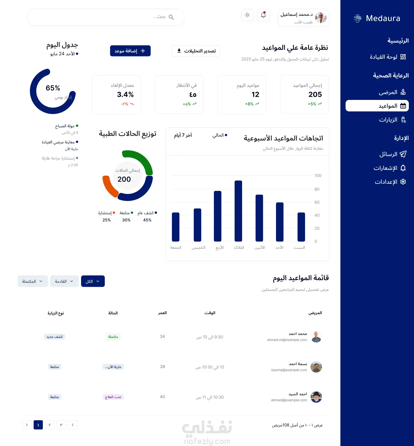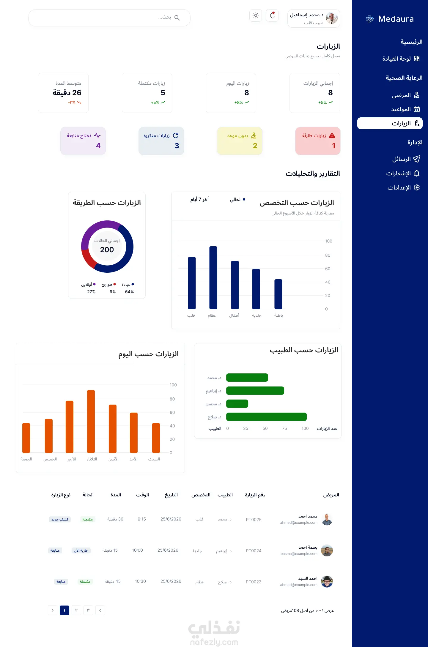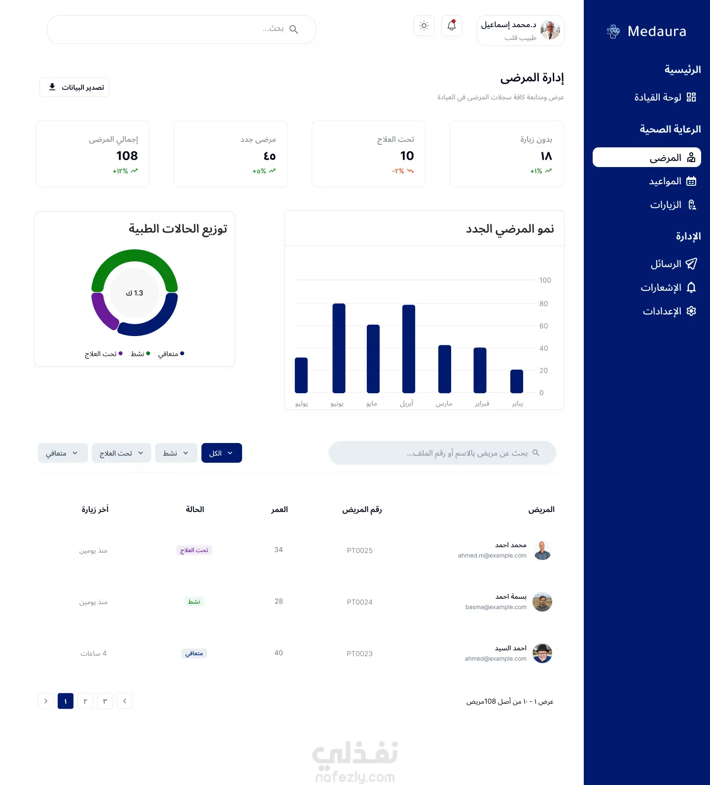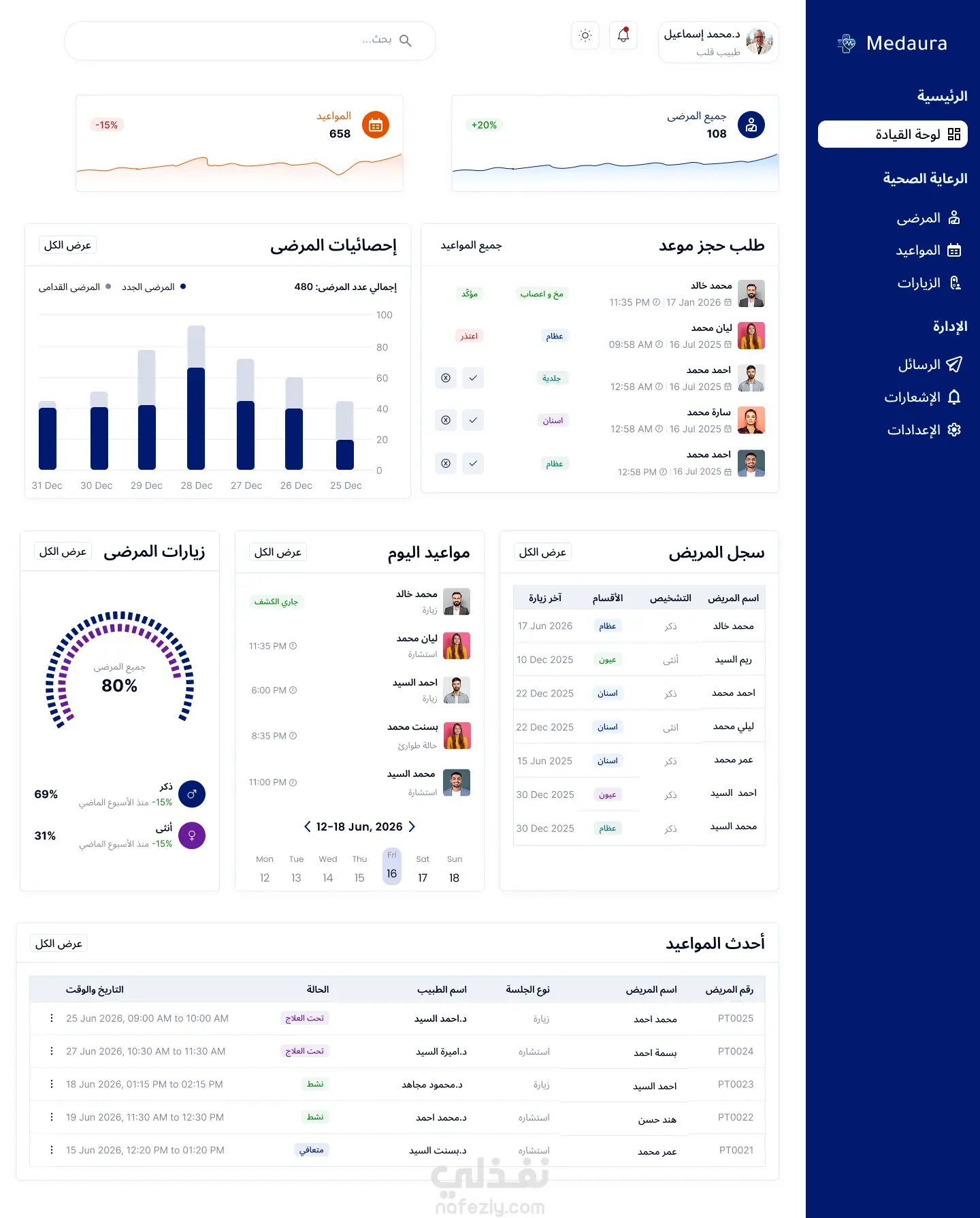 تصميم واجهة لوحة تحكم للأطباء UI/UX احترافية لإدارة المرضى والمواعيد