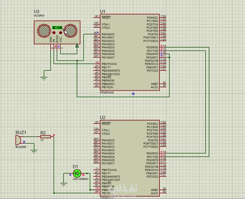 نظرة عامة على المشروع: تطوير محاكاة لنظام مدمج متعدد العقد يحاكي نظام التنبيه من الاقتراب (Proximity Alert) في السيارات باستخدام متحكمين دقيقين. يعتمد النظام على بروتوكول الاتصال التسلسلي (UART) لنقل بيانات المسافة المقاسة بواسطة مستشعر موجات فوق صوتية، وإطلاق إنذار فوري إذا قلت المسافة عن حد الأمان الحرج (50 سم). الإنجازات التقنية الأساسية: الاتصال بين المتحكمات (UART Communication): تأسيس اتصال تسلسلي غير متزامن ومستقر بين شريحتي ATmega32 (عقدة إرسال وعقدة استقبال) لتبادل قراءات المسافة في الوقت الفعلي. برمجة مستشعرات المسافة: برمجة المتحكم الأول (المرسل) للتعامل مع مستشعر (HC-SR04)، باستخدام المؤقتات العتادية (Timers) لحساب المسافة الفيزيائية بدقة بناءً على عرض النبضة (Pulse Width). منطق الاستجابة الفورية: تطوير كود المتحكم الثاني (المستقبل) لتحليل البيانات التسلسلية الواردة بشكل مستمر، وتفعيل نظام الإنذار (طنان صوتي ومصباح LED) تلقائياً لحظة اختراق حاجز الـ 50 سم. هندسة الأنظمة الموزعة (Distributed Systems): بناء واختبار نظام مدمج يعتمد على توزيع المهام على أكثر من متحكم داخل بيئة محاكاة (Proteus)، مما يعكس فهماً لتصميم الأنظمة القابلة للتوسع في تطبيقات السيارات الحديثة. التقنيات المستخدمة: Embedded C, ATmega32 (x2), UART Protocol, HC-SR04 Sensor, Proteus Simulation.