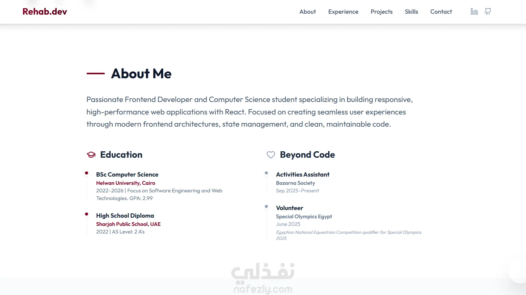 يعكس الموقع هويتي الشخصية ويعمل كعرض حي لقدراتي في تطوير الواجهات الأمامية، بما يشمل التصميم المتجاوب، إدارة الحالة، وكتابة كود نظيف وقابل للصيانة.