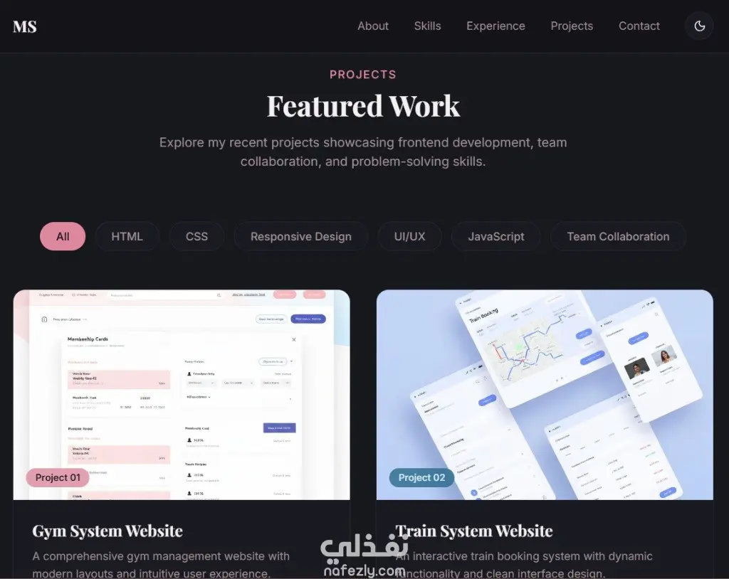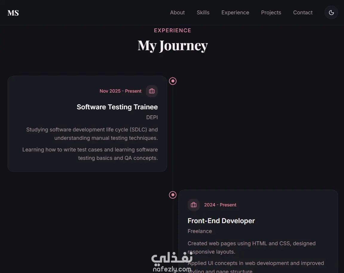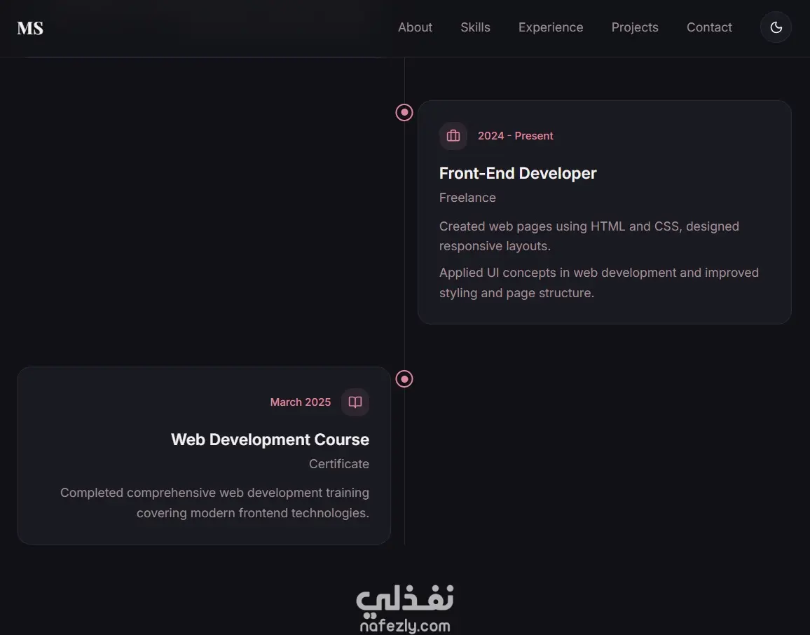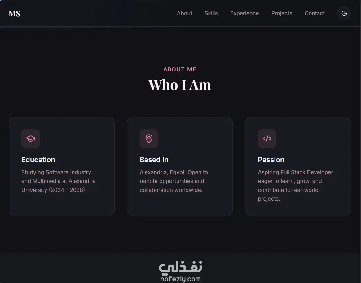 • صفحة تعريفية (About) توضح مهاراتك وخبراتك