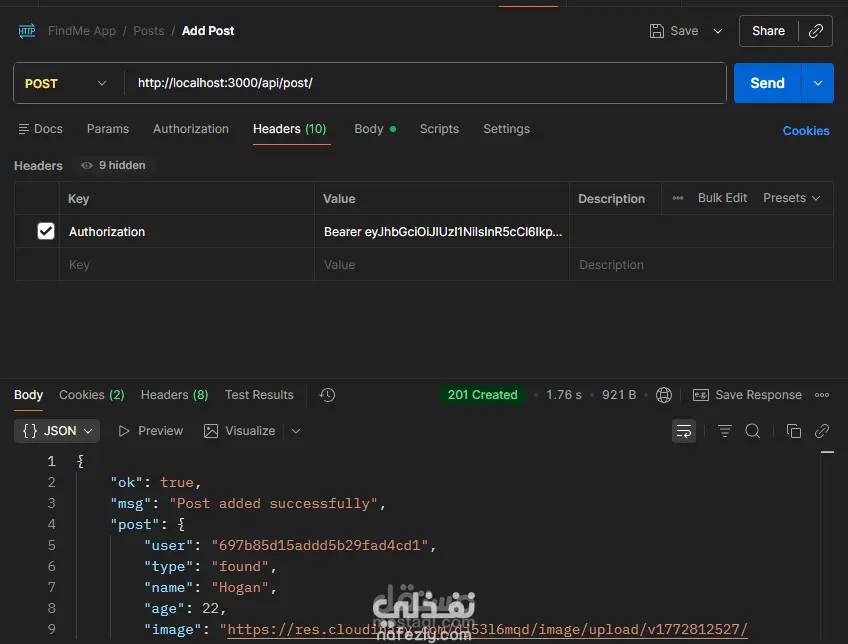 Backend متكامل لتطبيق مجتمعي يتضمن Auth شامل Signup Signin Refresh Logout مع دعم OTP و FaceBook Login بالإضافة لإدارة المستخدم والبوستات والتعليقات والإشعارات والشات تم بناء REST APIs منظمة وقابلة للتوسع مع تأمين باستخدام JWT وربط MongoDB