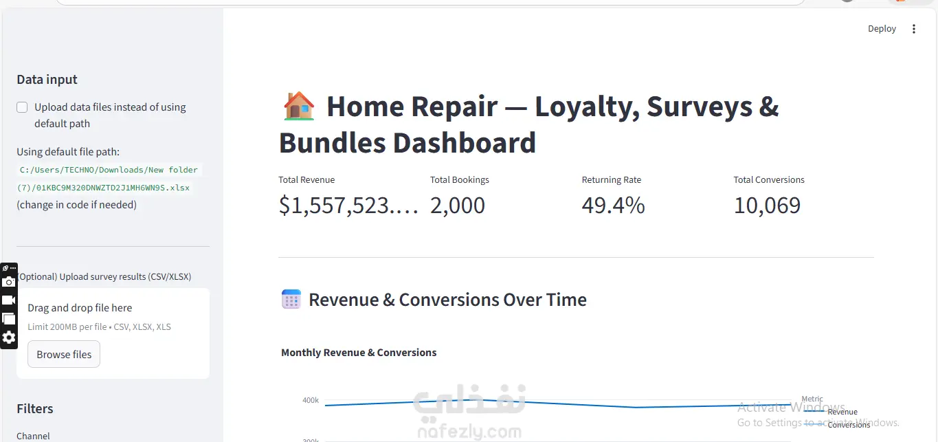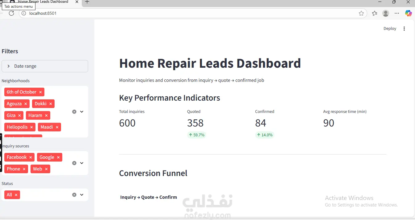 يمكنني تصميم Dashboards مخصصة لأي نوع من البيانات حسب احتياجات العميل.