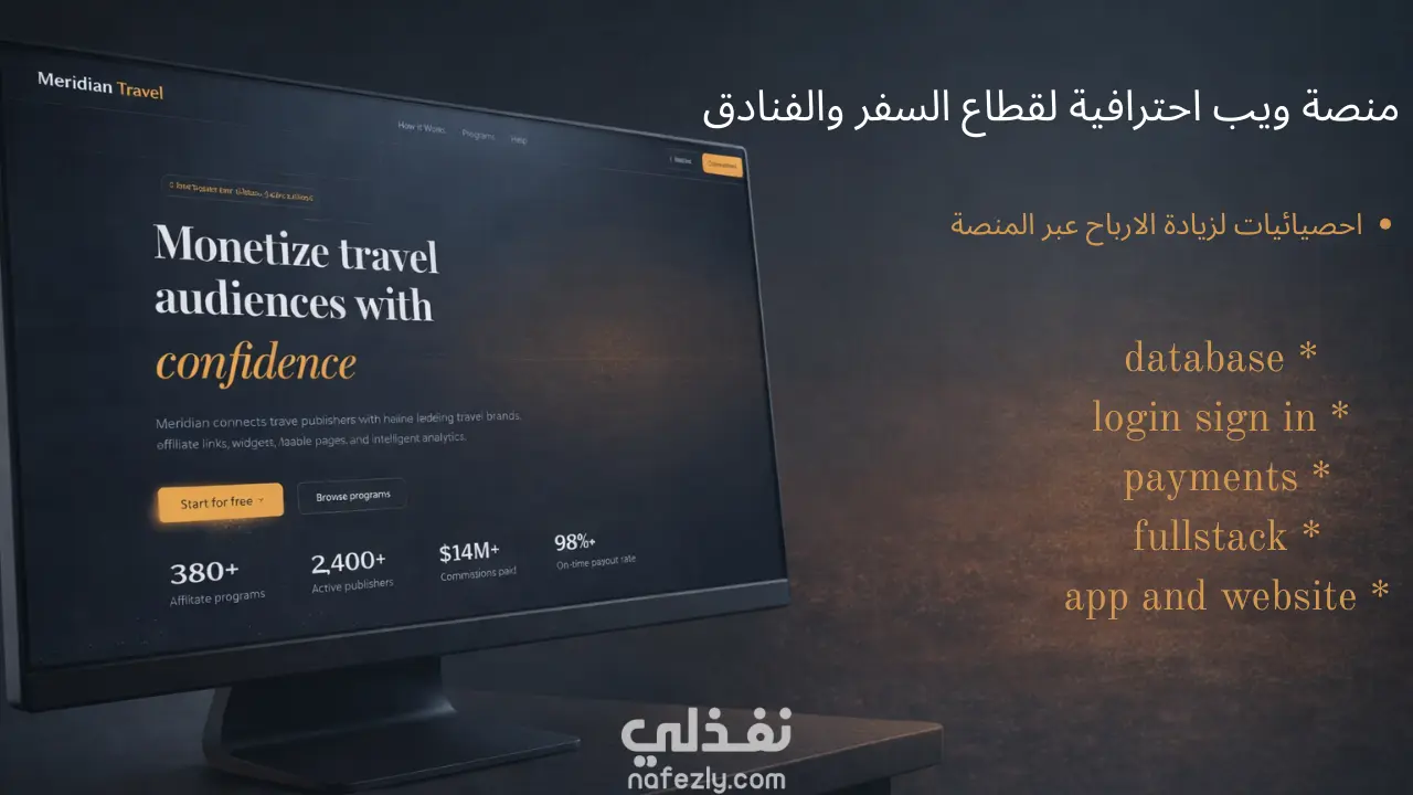 قمت ببناء واجهة ويب احترافية مخصصة لقطاع السفر والفنادق، مستوحاة من الأسلوب الحديث المستخدم في المنصات العالمية مثل travelpayouts.