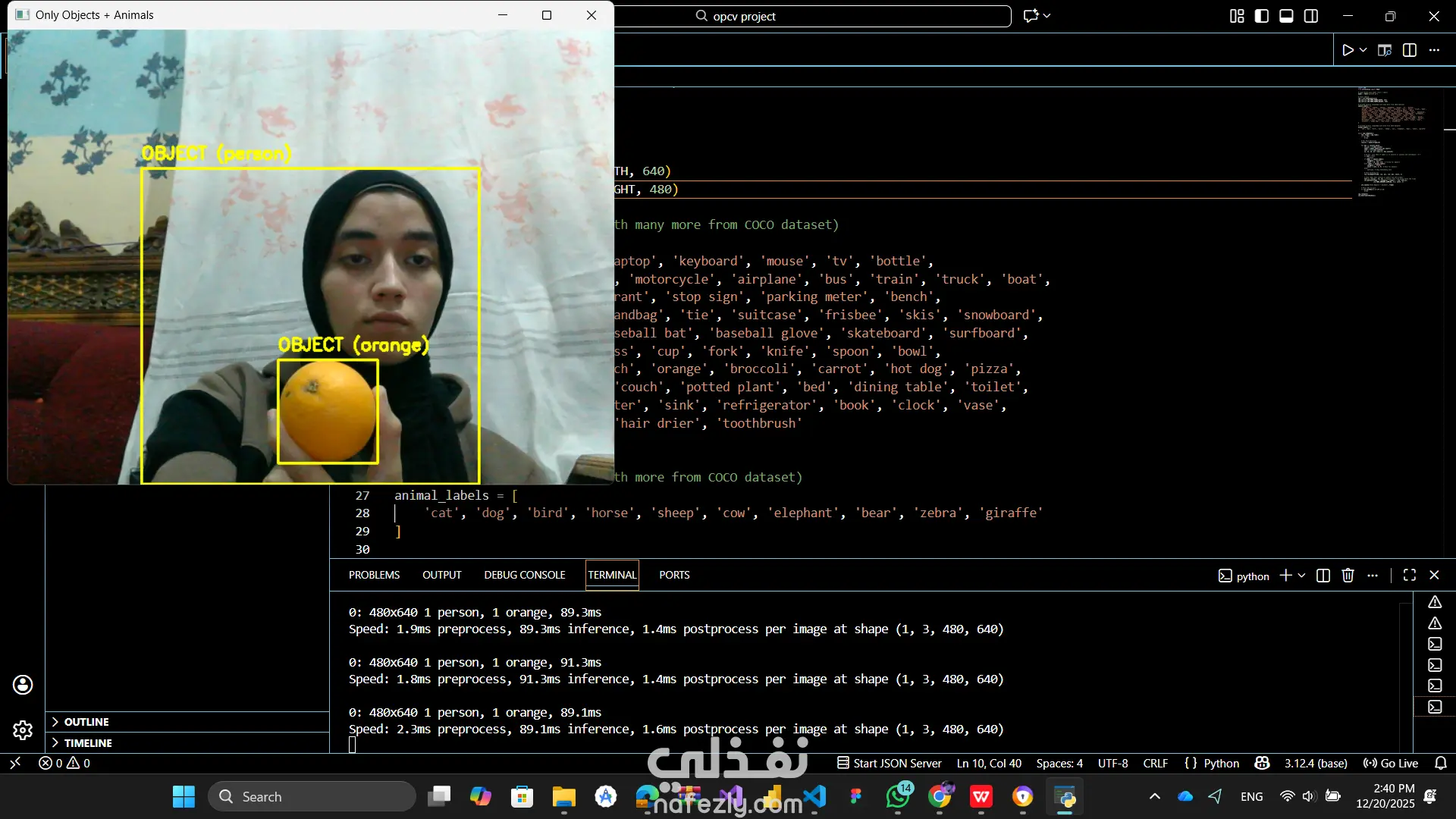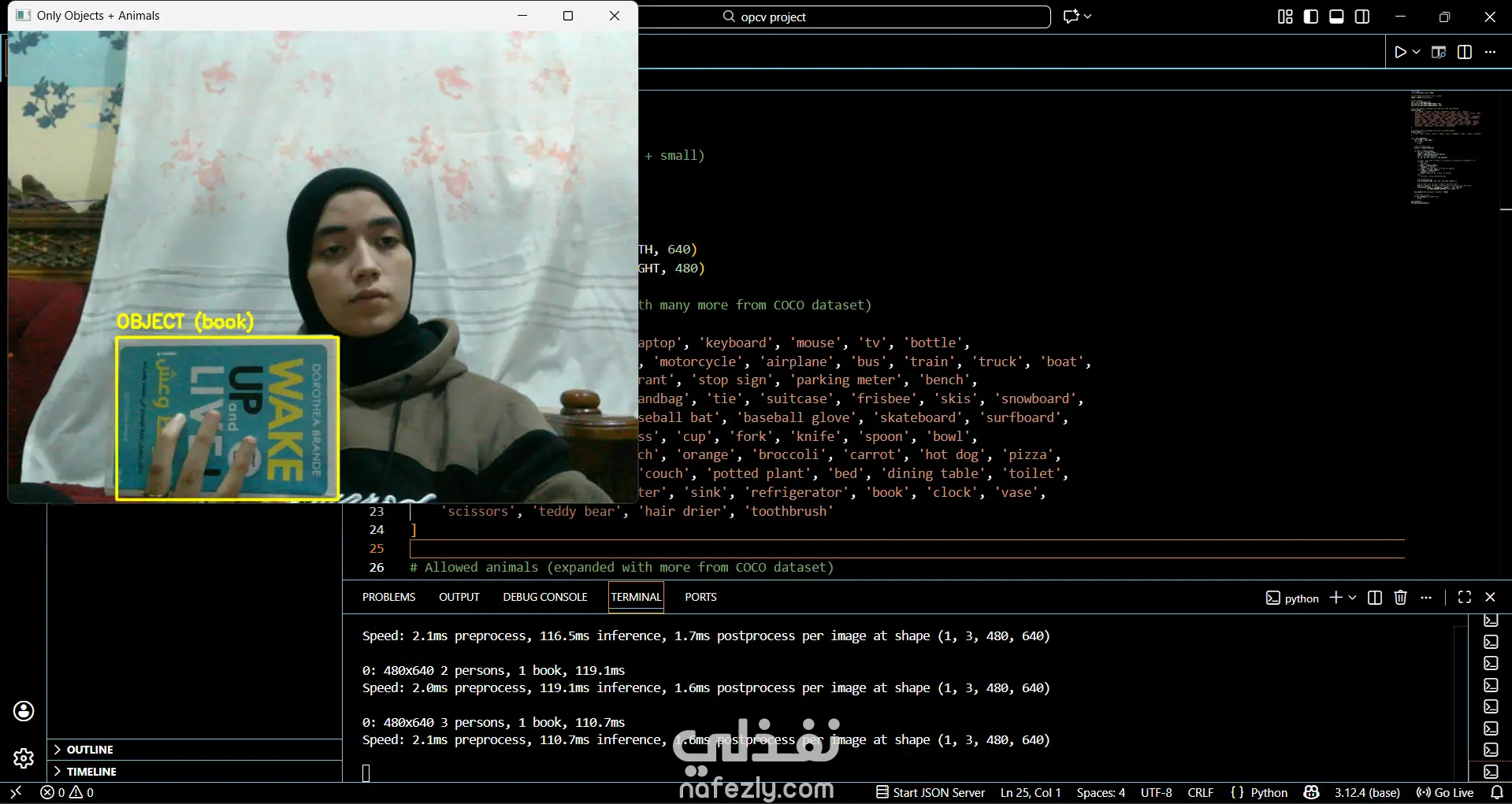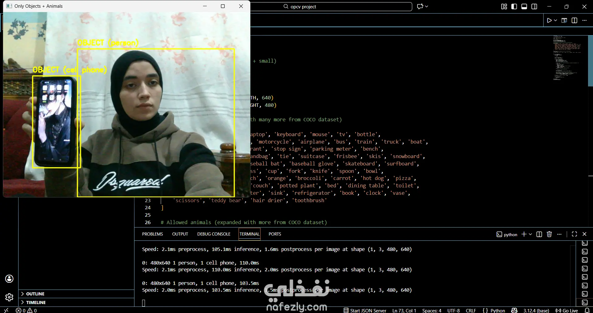 أقدّم نظام ذكاء اصطناعي متطور للكشف عن الكائنات والحيوانات في الوقت الحقيقي باستخدام YOLOv8 Nano و OpenCV عبر كاميرا الويب. يمكن للنظام التعرف على الأشياء الشائعة (مثل الأشخاص، السيارات، الأدوات) وكذلك الحيوانات مثل القطط، الكلاب، الخيول، الأفيال وغيرها، مع عرض Bounding Boxes وتسميات دقيقة على الفيديو. المشروع مناسب لتطبيقات المراقبة الأمنية، المشاريع التعليمية، وأنظمة مراقبة الحيوانات، كما يمكن تطويره ليعمل على واجهة ويب أو كـ API جاهز للتكامل مع أي تطبيق آخر.