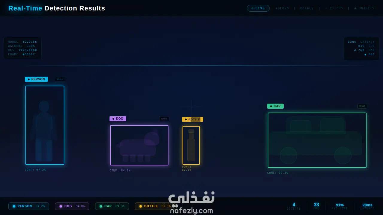 نظام كشف الكائنات والحيوانات في الوقت الحقيقي باستخدام YOLOv8 وOpenCV
