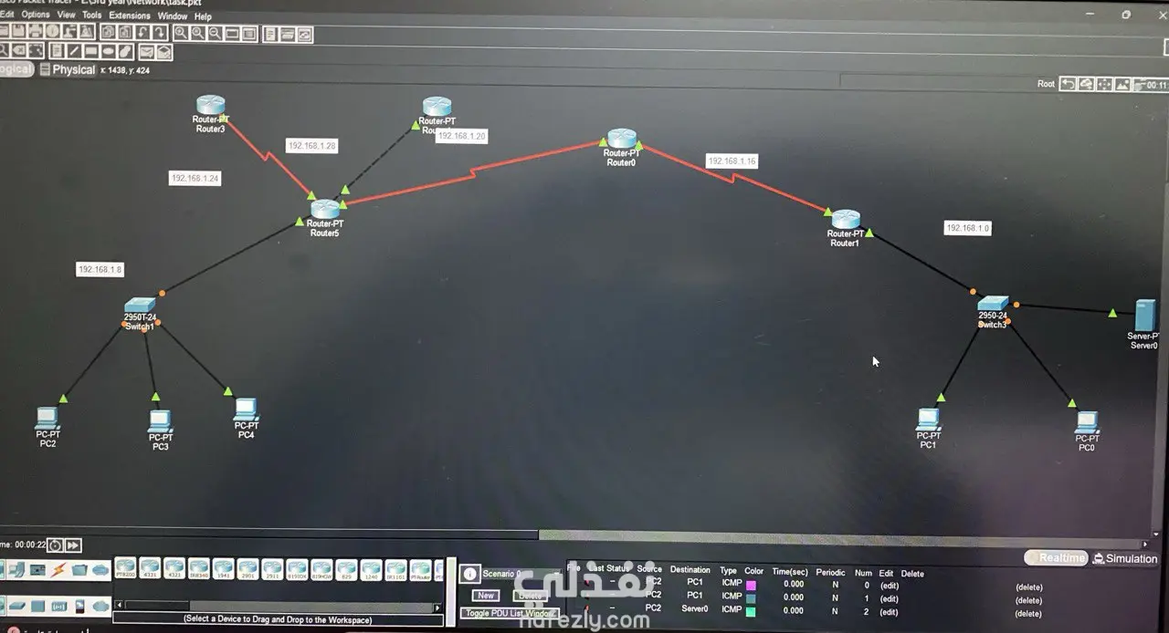 قمت بتصميم وبناء نموذج شبكة محاكاة متكامل باستخدام برنامج Cisco Packet Tracer. المشروع يوضح كيفية ربط الأجهزة المختلفة داخل بيئة عمل واحدة لضمان تواصل سريع وآمن بين الأقسام. ما قمت بتنفيذه في المشروع: -بناء الهيكل (Topology): توزيع أجهزة الكمبيوتر، السيرفرات، الطابعات، وربطها باستخدام الـ Switches والـ Routers بشكل منظم. -إعداد العناوين (IP Addressing): توزيع الـ IPs على جميع الأجهزة بشكل يدوي (Static) أو تلقائي (DHCP) لضمان عدم حدوث تضارب. -تأمين الاتصال: التأكد من قدرة الأجهزة على التواصل مع بعضها البعض (Connectivity) وعمل اختبارات الـ Ping بنجاح. -تنظيم الأقسام: تقسيم الشبكة بطريقة تسهل إدارتها مستقبلاً داخل أي شركة أو مكتب.