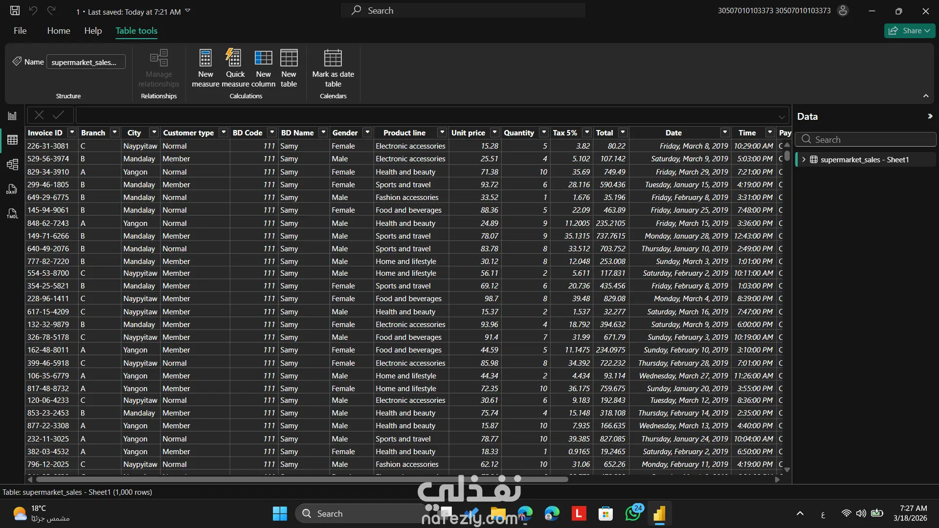 قدمت من خلال المشروع ده تحليل متكامل لبيانات مبيعات سوبر ماركت باستخدام Power BI، بهدف تحويل البيانات لرؤى واضحة تساعد في اتخاذ قرارات أفضل. اشتغلت على تنظيف وتجهيز البيانات، وبعد كده صممت داشبورد تفاعلي بيعرض أهم مؤشرات الأداء خلال الربع الأول من 2019، زي إجمالي المبيعات، الأرباح، وعدد الطلبات. الداشبورد بيوضح توزيع المبيعات حسب الفئات المختلفة، المناطق، والمنتجات، وكمان بيعرض الاتجاهات الزمنية عشان نحدد أفضل وأضعف الفترات في الأداء. من خلال التحليل، قدرت أحدد المنتجات الأعلى مبيعًا، وتأثير الخصومات على الأرباح، وسلوك العملاء في الشراء. الداشبورد مصمم بشكل بسيط وسهل الاستخدام، وبيسمح لأي مستخدم يستكشف البيانات ويتفاعل معاها بشكل مباشر.