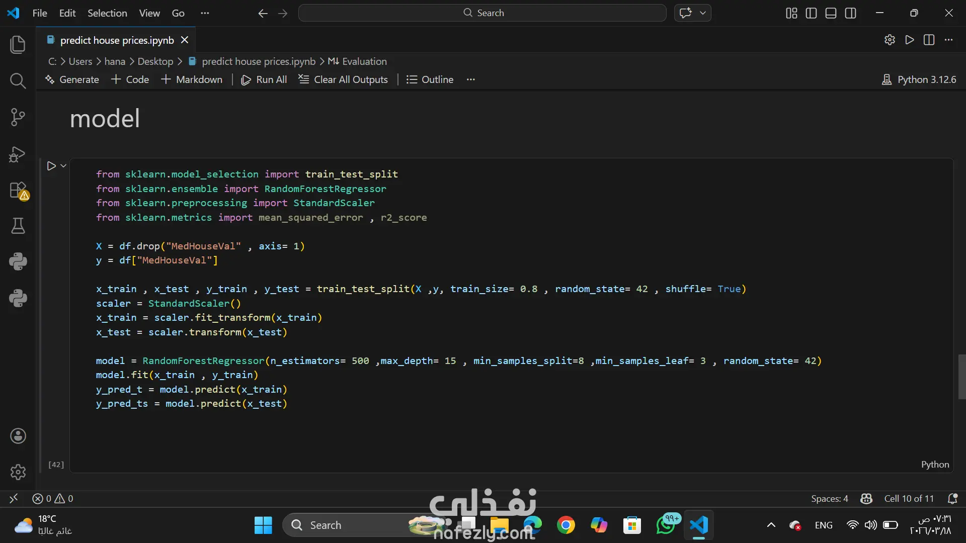 في المشروع ده اشتغلت على توقع أسعار البيوت باستخدام بيانات فيها معلومات عن كل بيت زي متوسط الدخل، عمر البيت، عدد الغرف والحمامات، عدد السكان ومكان البيت على الخريطة بدأت أول حاجة بتهيئة البيانات وفصلت العمود اللي عايزين نتوقعه وعملت scaling للبيانات عشان كل القيم تكون على نفس المقياس بعد كده دربت موديل Random Forest على بيانات التدريب عشان يتعلم العلاقة بين خصائص البيت وسعره ولما جربت الموديل على بيانات الاختبار قست دقة التوقعات باستخدام MSE وRMSE وR² وعدّلت الـ hyperparameters زي عدد الأشجار وعمقها عشان أحسن الأداء والنتيجة كانت رائعة الموديل قدر يتوقع أسعار البيوت بدقة كويسة جدًا واشتغلت بيانات الاختبار مظبوط من غير overfitting
