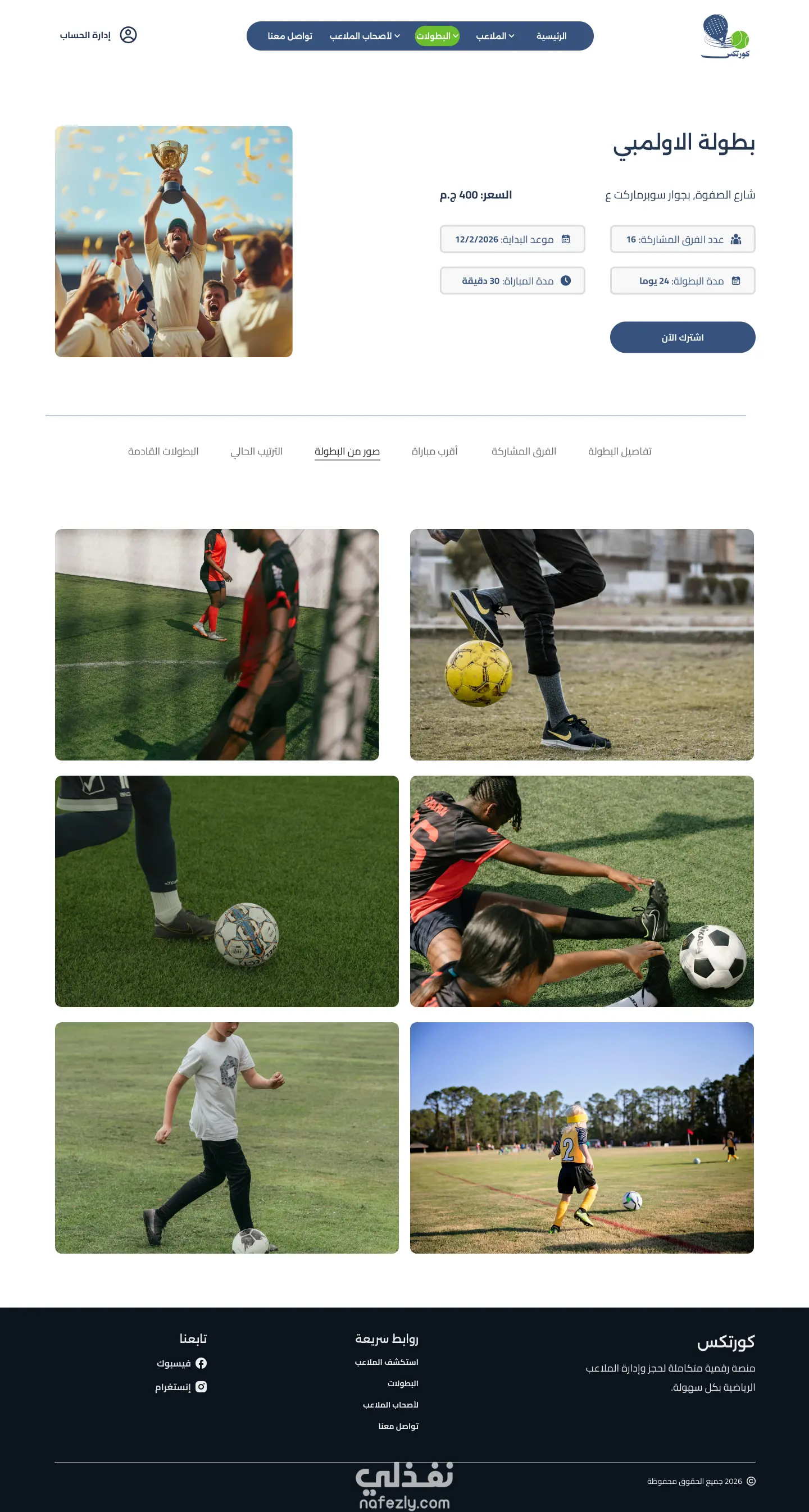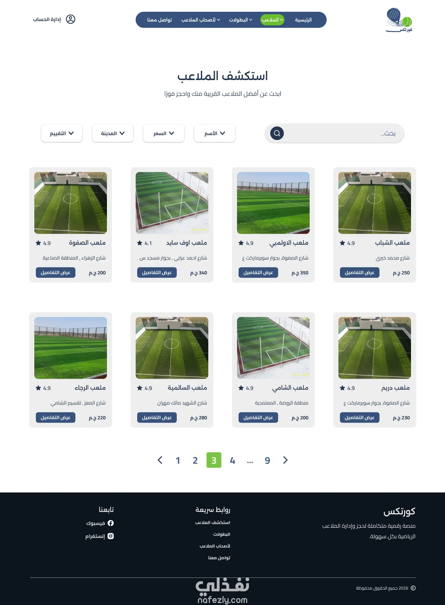 تصميم موقع لحجز الملاعب بمختلف انواعها