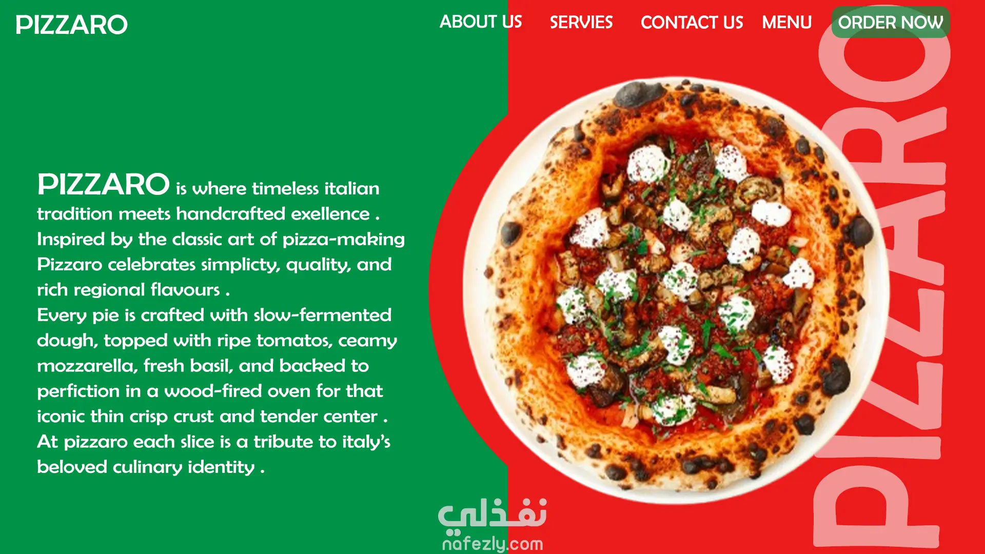 تصميم واجهة landing page لمطعم بيتزا باستخدام Adobe Photoshop. الصفحة تشمل: عرض قائمة البيتزا والأصناف الشهيرة تصميم أزرار الطلب والدفع بشكل جذاب اختيار ألوان وخطوط تعكس جو المطعم وتجربة المستخدم المرئية