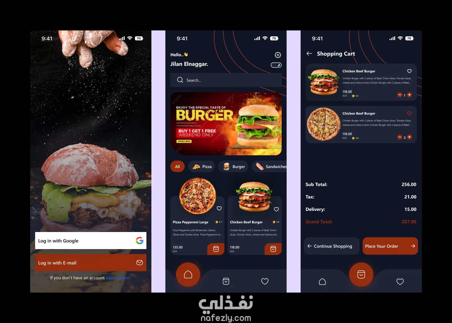 قمت بتصميم واجهة مستخدم (UI) لتطبيق باستخدام Figma، مع التركيز على تنظيم العناصر وتسهيل تجربة المستخدم أثناء التصفح والشراء. يشمل التصميم عدة صفحات أساسية تمثل رحلة المستخدم داخل التطبيق: 1. صفحة تسجيل الدخول (Login Page) تم تصميم واجهة تسجيل دخول بسيطة وسهلة الاستخدام، مع إمكانية تسجيل الدخول باستخدام البريد الإلكتروني أو عبر حساب Google، مما يسهل عملية الوصول للمستخدمين. 2. الصفحة الرئيسية (Home Page) تعرض الصفحة الرئيسية المنتجات بشكل منظم مع تصميم واضح يساعد المستخدم على تصفح المنتجات بسهولة واكتشاف العروض أو العناصر المميزة. 3. صفحة سلة المشتريات (Cart Page) تتيح للمستخدم مراجعة المنتجات التي قام بإضافتها إلى السلة، مع عرض السعر والكمية بطريقة واضحة تساعد على إتمام عملية الشراء بسهولة. تم تصميم الواجهات بأسلوب حديث مع مراعاة: وضوح العناصر البصرية سهولة التنقل بين الصفحات تجربة مستخدم مريحة وبسيطة