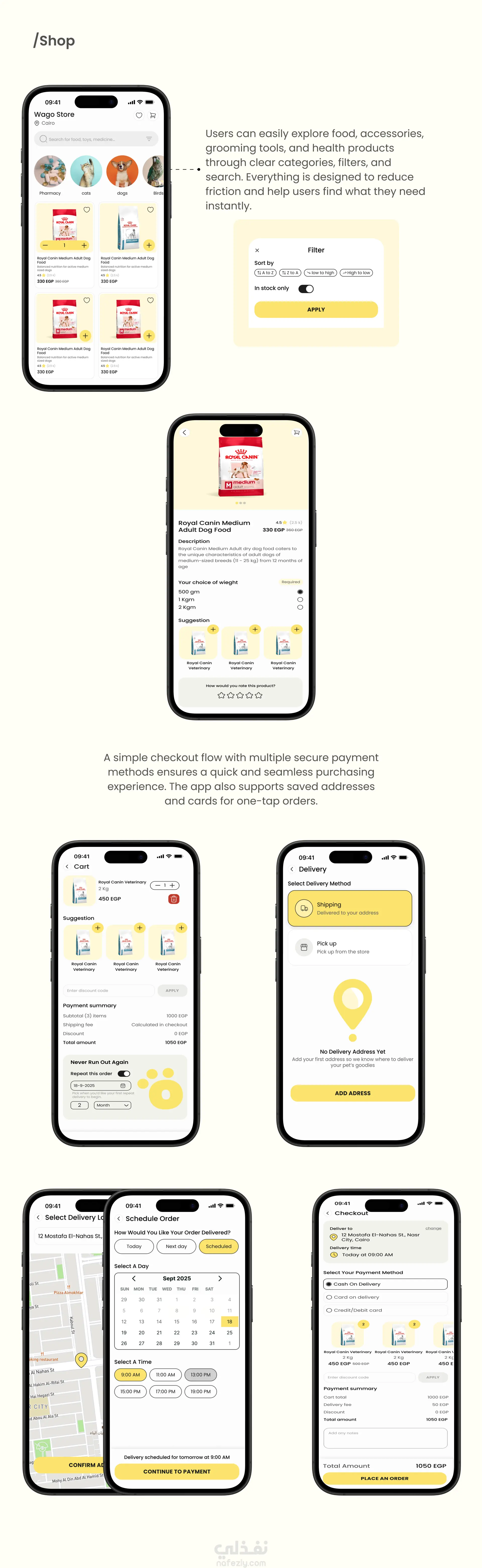 صممت تجربة المستخدم بشكل متكامل لتطبيق متعدد الخدمات للعناية بالحيوانات الأليفة، شمل التسوق، الحجز، خدمات العناية، وحجز المواعيد البيطرية، مع تقديم تدفقات استخدام واضحة، وايرفريم، وواجهات موبايل عالية الدقة. كما قمت ببناء نظام تصميم قابل للتوسع، والتعاون مع فرق المنتج والتطوير لتحسين المتطلبات، وتعزيز سهولة الاستخدام، وضمان تجربة مستخدم متسقة وسلسة عبر جميع أجزاء التطبيق.