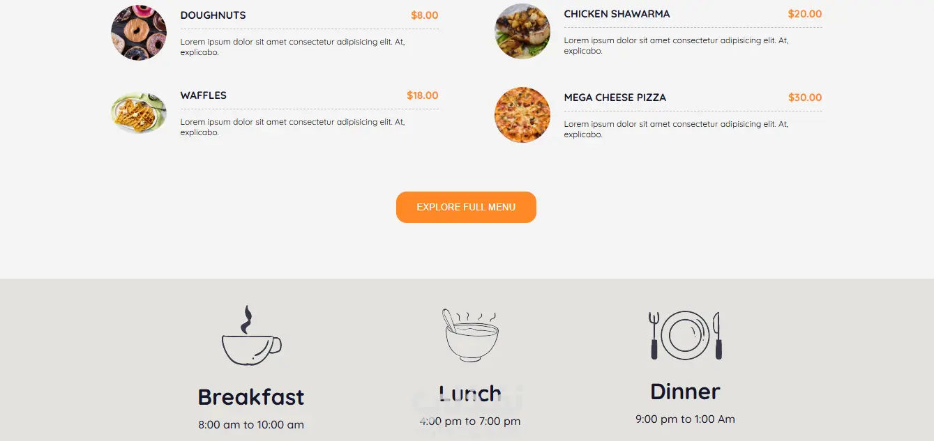 صفحة هبوط لعرض خدمات مطعم