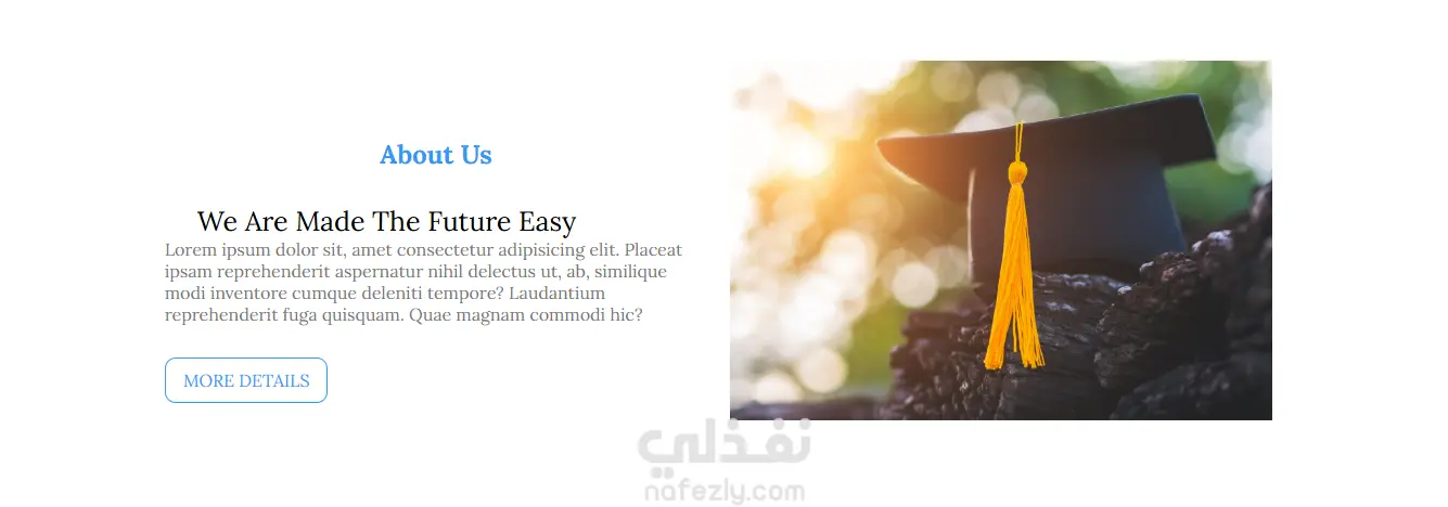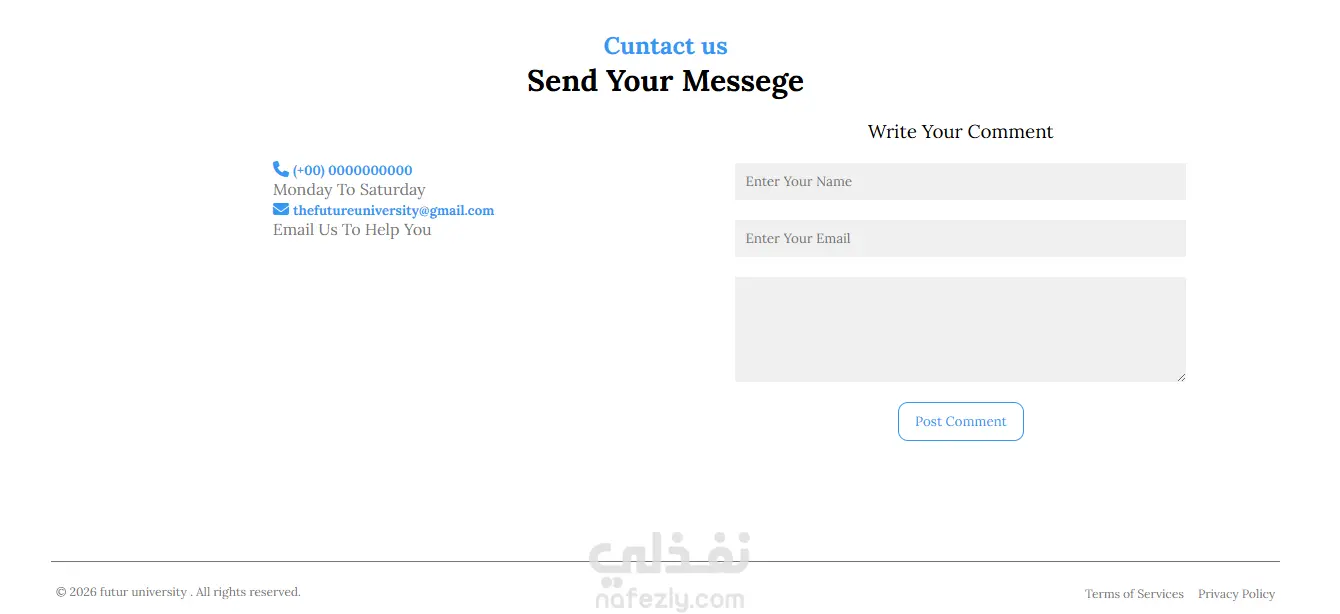 صفحة هبوط ب استخدام html و css و Javascript لتعريف بجامعة - تصميم عصري و بسيط . - Navbar يسهل التنقل بين أقسام الموقع. - انميشن لصفحة لتحسين التصفح - تصميم متجاوب يعمل بكفاءة على جميع الشاشات. - أكواد نظيفة وسهلة التعديل. - Html : لبناء الهيكل الإنشائي للصفحات - Css : للتنسيق الجمالي واستخدام أنظمة Layout متطورة مثل Flexbox و Grid. - JavaScript: انميشن الصفحة