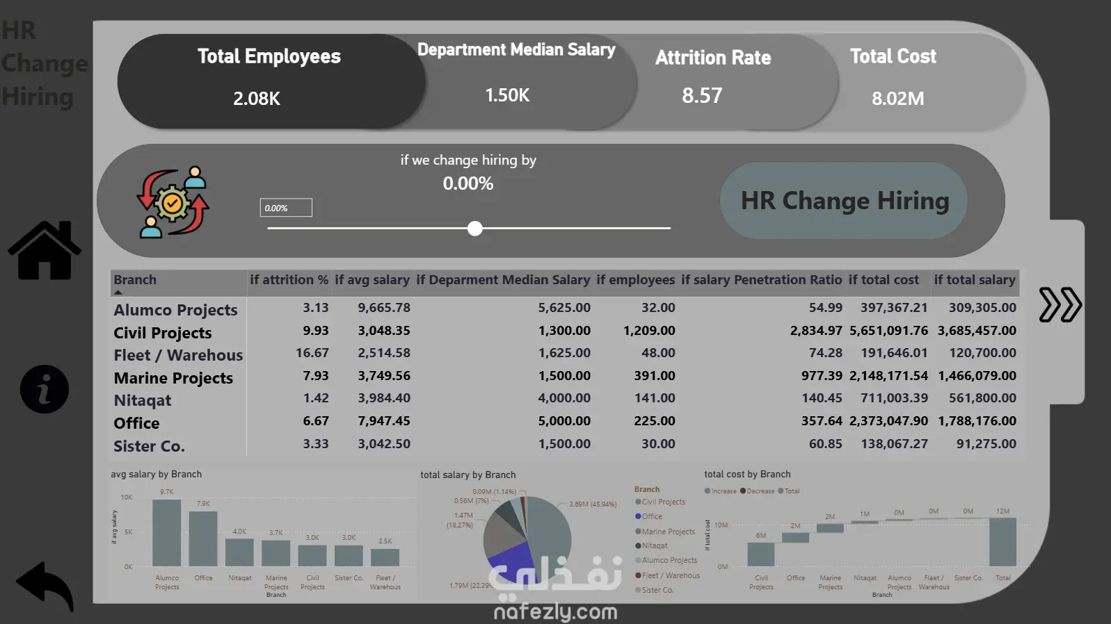 أدوات تفاعلية لتغيير سيناريوهات التوظيف ومتابعة أثرها على التكلفة والموارد.