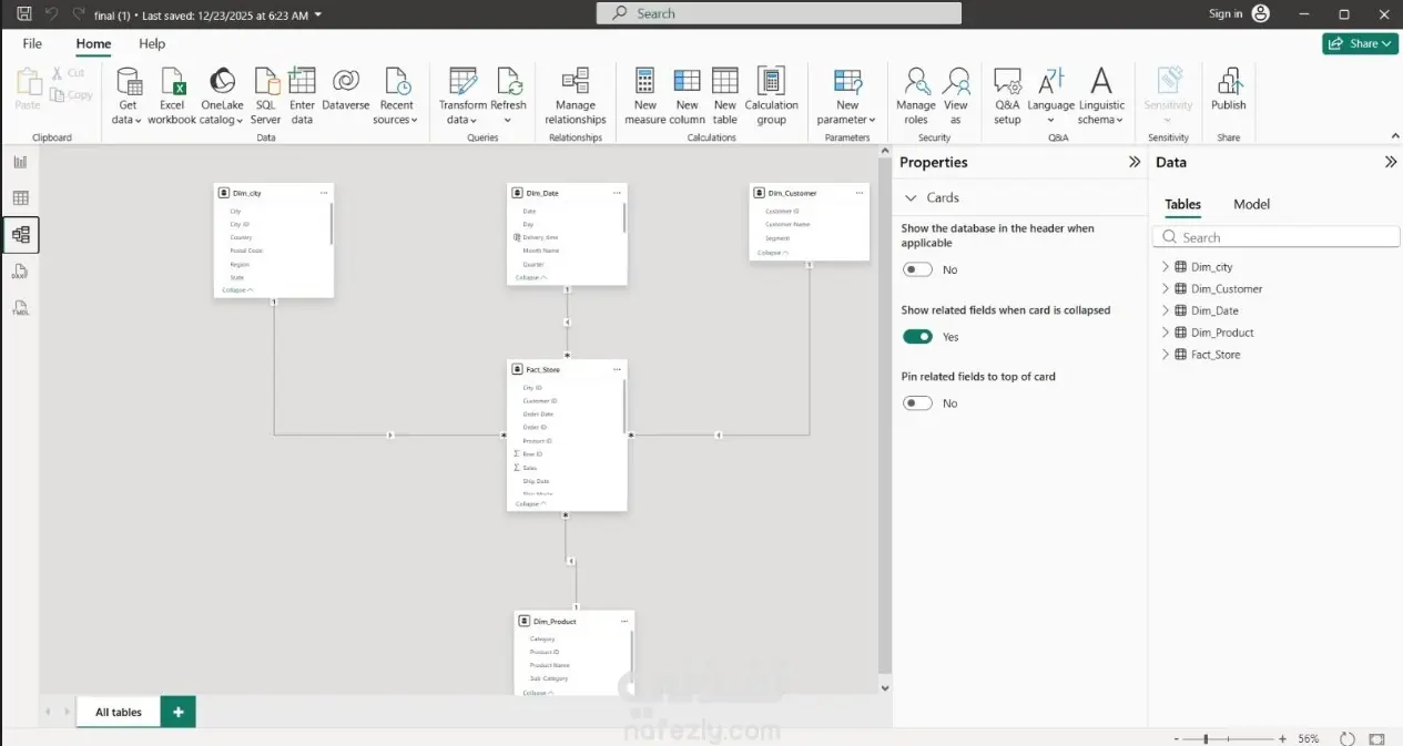 At the core of this solution is a robust star schema data model integrating key tables including the main sales fact table customer dimension table date dimension table city dimension table and product dimension table. These relationships ensure accurate aggregations and enable drill-through capabilities for detailed analysis. The model supports scalability and can seamlessly incorporate additional data sources for future growth.