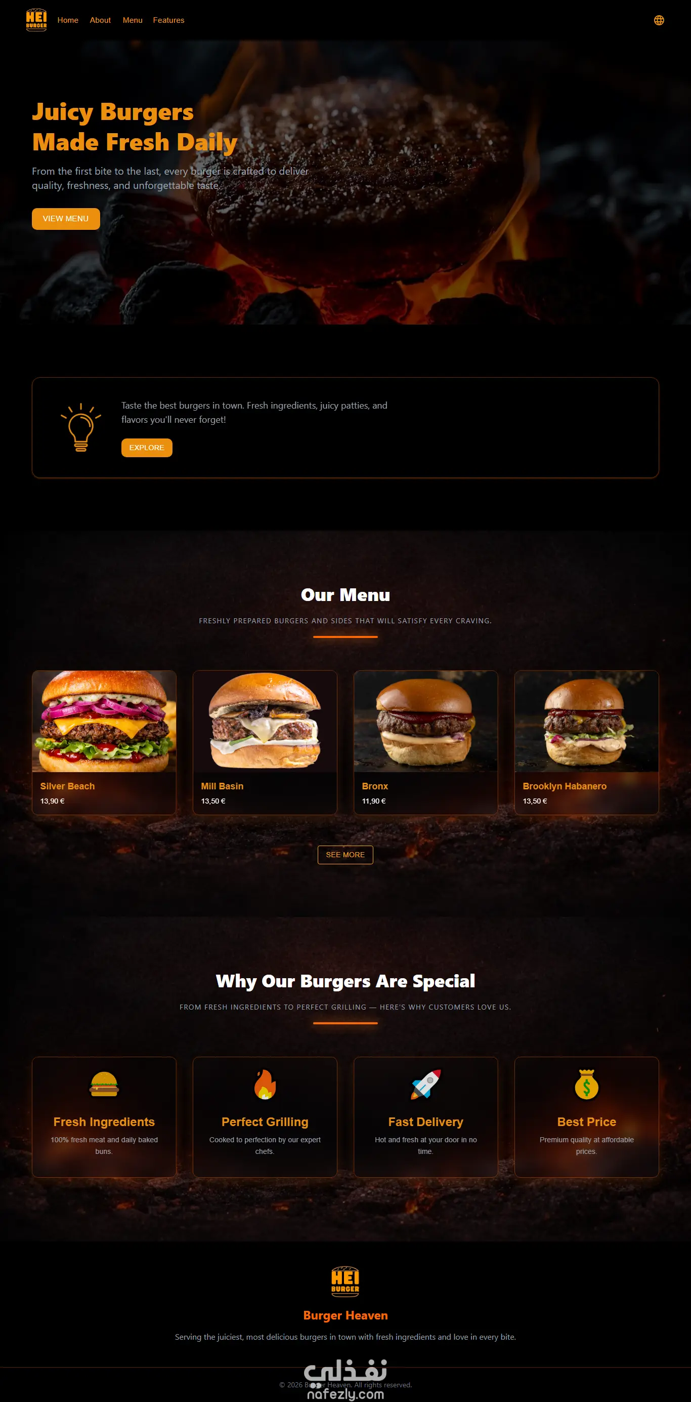 قمت بتطوير موقع إلكتروني لمطعم مشويات لعرض قائمة الطعام بشكل احترافي وجذاب، مع التركيز على سهولة التصفح وتجربة المستخدم، بحيث يقدر العميل يشوف الأصناف ويختار بسهولة. دوري في المشروع: - تصميم وتطوير واجهة المستخدم بشكل عصري - تنفيذ تصميم متجاوب (Responsive) لجميع الأجهزة - عرض قائمة الطعام (Menu) بشكل منظم - تحسين تجربة المستخدم وسهولة التنقل داخل الموقع التقنيات المستخدمة: react - tailwind - typescript - material UI - AOS مميزات المشروع: - تصميم جذاب مناسب لمجال المطاعم - سرعة تحميل جيدة - متوافق مع جميع الشاشات (موبايل / تابلت / كمبيوتر) - عرض منظم للأصناف مع صور واضحة