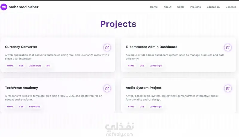 هذا موقع إلكتروني لعرض أعمالي الشخصية، صُمم وطُوّر خصيصًا لعرض مهاراتي ومشاريعي وخبراتي كمطور واجهات أمامية.