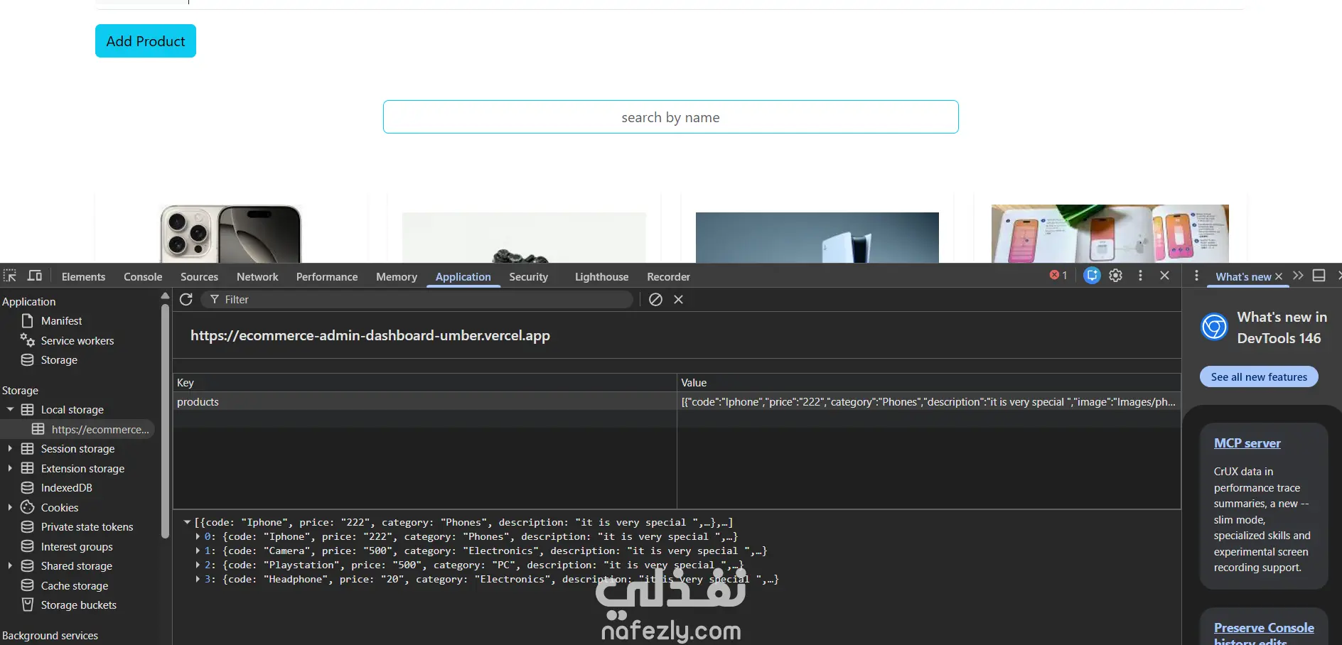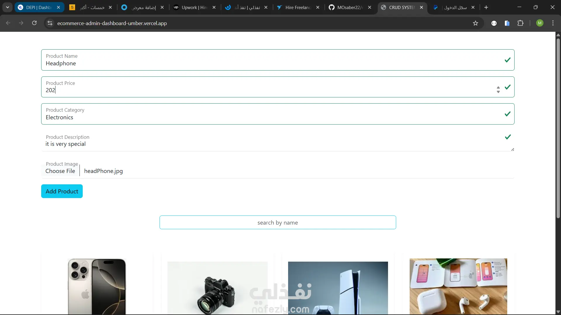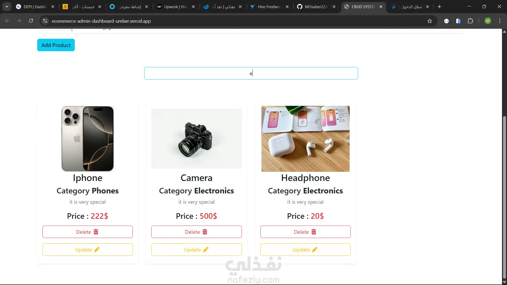 تتيح هذه اللوحة للمسؤول إدارة المنتجات من خلال عمليات CRUD الكاملة (إنشاء، قراءة، تحديث، حذف).