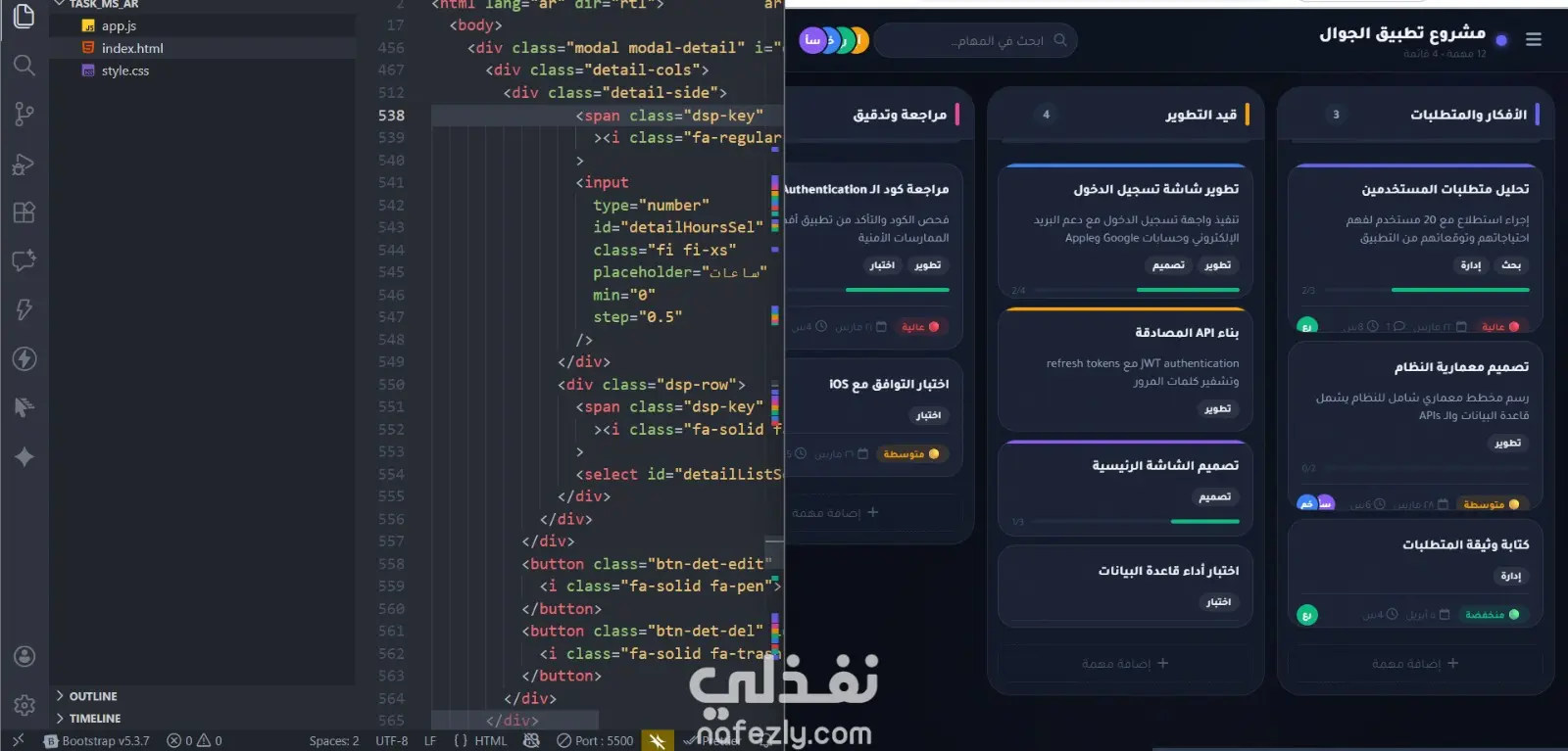 موقع إدارة مهام (Task Management) بواجهة تفاعلية حديثة مستوحاة من أنظمة Kanban مثل Trello، تم تطويره باستخدام HTML وCSS وJavaScript، مع دعم كامل لخاصية السحب والإفلات (Drag & Drop) لتنظيم المهام بسهولة بين القوائم. يتيح التطبيق إنشاء لوحات (Boards) وإضافة قوائم (Lists) بداخلها، ثم إضافة المهام (Tasks) وتحريكها بين القوائم بشكل مرن. يتم حفظ البيانات باستخدام Local Storage لضمان بقاء المهام دون الحاجة إلى Backend. يتميز بتصميم بسيط يركز على الإنتاجية وتجربة المستخدم، مع حركات انتقالية سلسة وتصميم متجاوب يعمل بكفاءة على جميع الأجهزة. الكود منظم وقابل للتوسع، مما يجعله مناسبًا كنواة لتطبيق إدارة مهام متكامل يمكن تطويره وربطه بخدمات Backend لاحقًا.