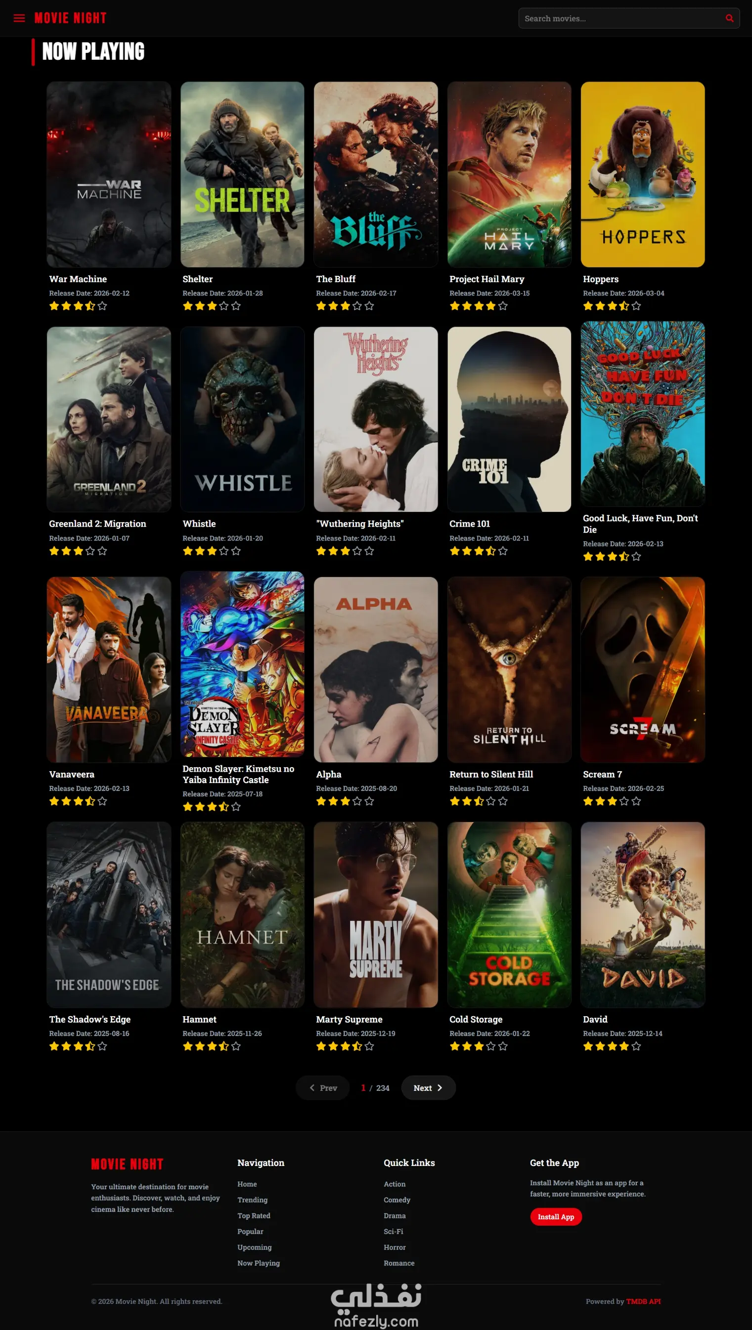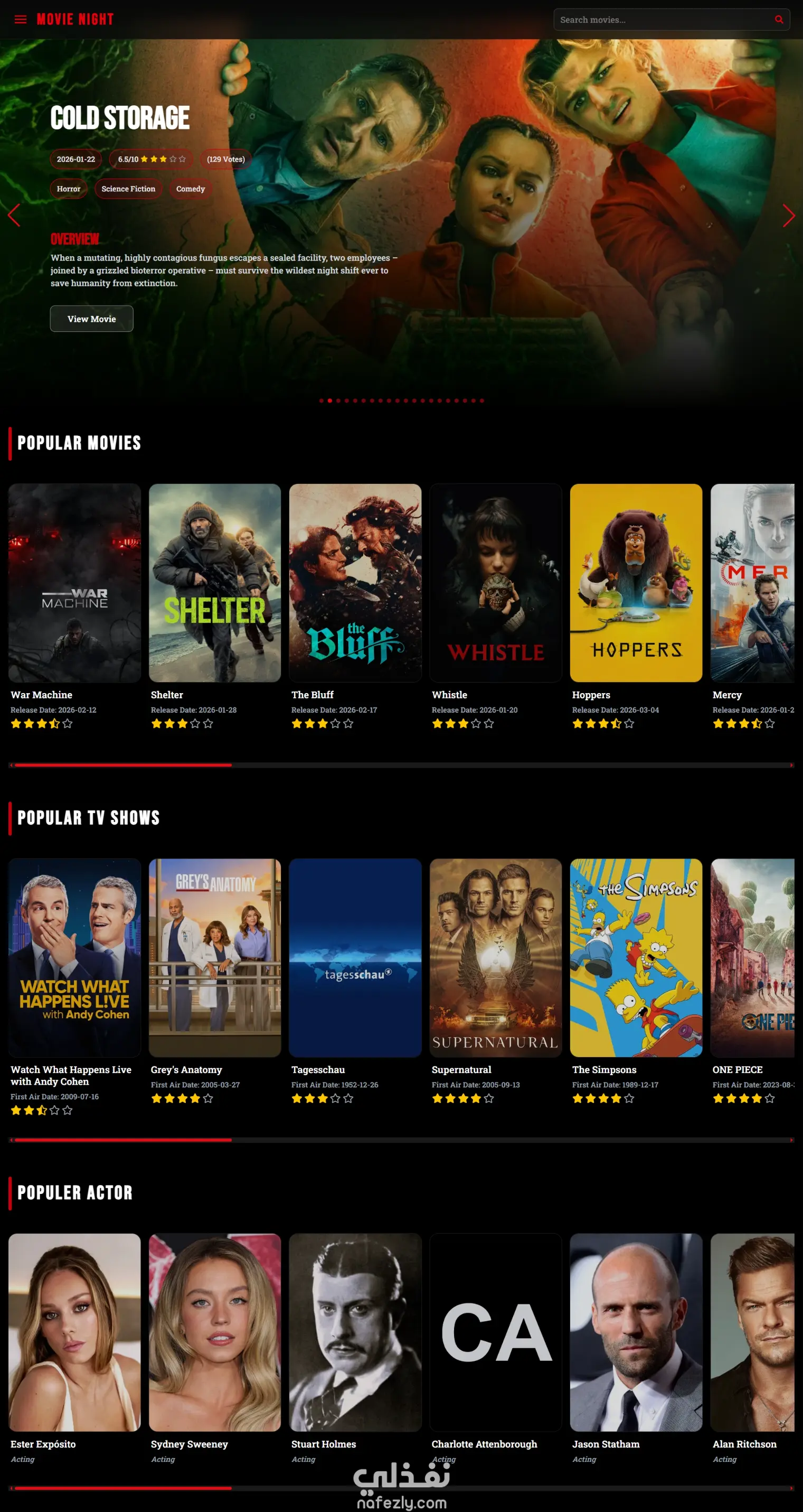 Movie Night – موقع متكامل لعرض الأفلام مع Streaming