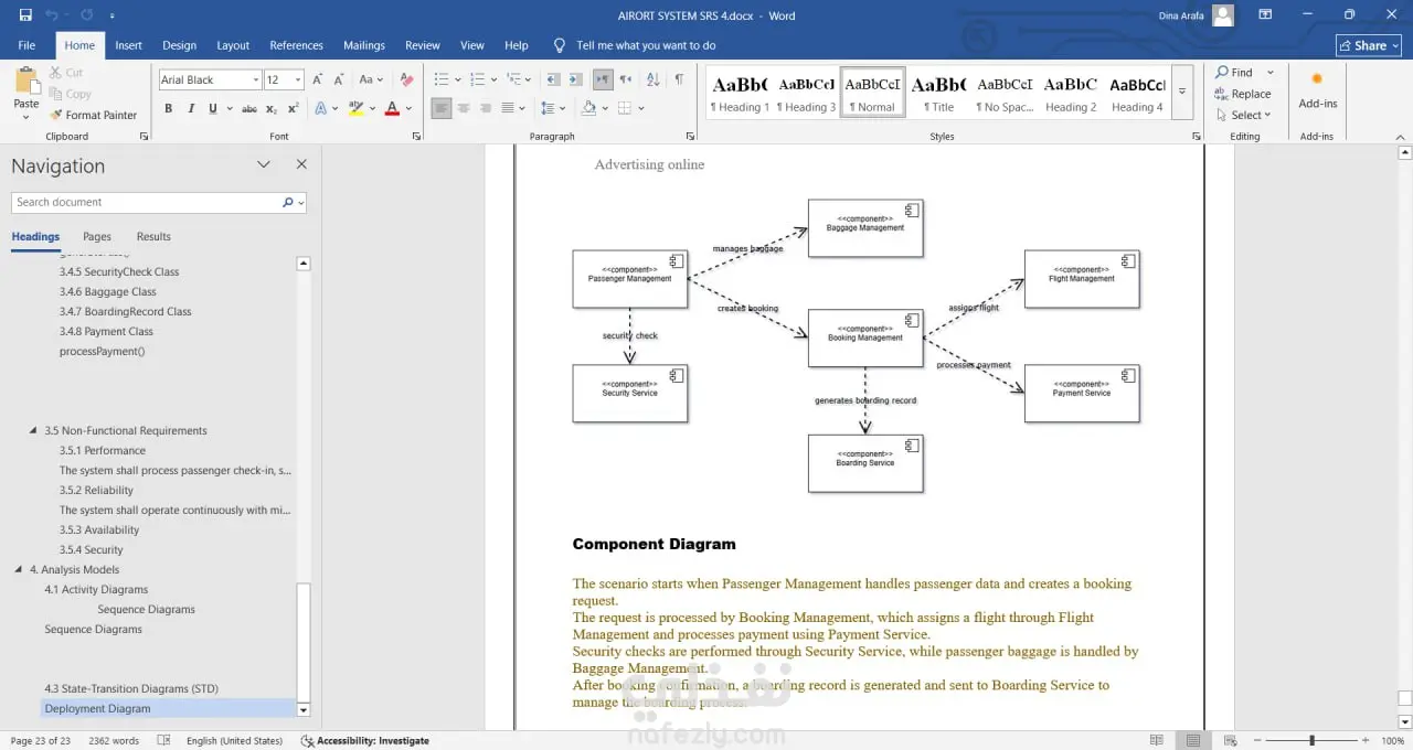 إدارة الرحلات: تسجيل ومتابعة الرحلات الجوية، مواعيد الإقلاع والهبوط، وأسماء شركات الطيران. إدارة الطائرات: تتبع بيانات الطائرات، الصيانة، وحالة التوافر لكل طائرة. إدارة الموظفين: حفظ بيانات الموظفين، مهامهم، وجداول العمل. إدارة الركاب: تسجيل بيانات المسافرين، الحجز، ومتابعة الرحلات الخاصة بهم. تقارير دقيقة: إنشاء تقارير لحظية عن الرحلات، الطائرات، الموظفين، والركاب لتسهيل اتخاذ القرارات. ربط الجداول: قاعدة بيانات متكاملة تربط بين كل العناصر لضمان دقة وسهولة الوصول للمعلومات.
