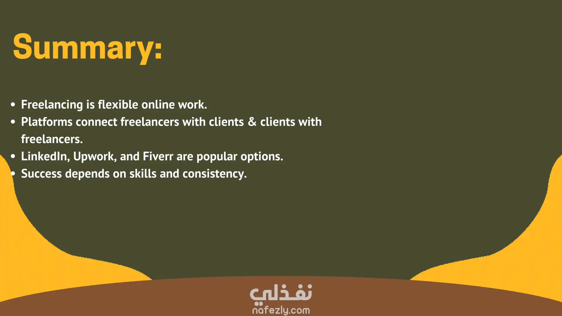 أحرص على تنسيق الشرائح بصورة متناسقة من حيث الألوان والخطوط وترتيب العناصر، مع تحسين الشكل العام ليظهر المحتوى بشكل أكثر احترافية وسهولة في الفهم.