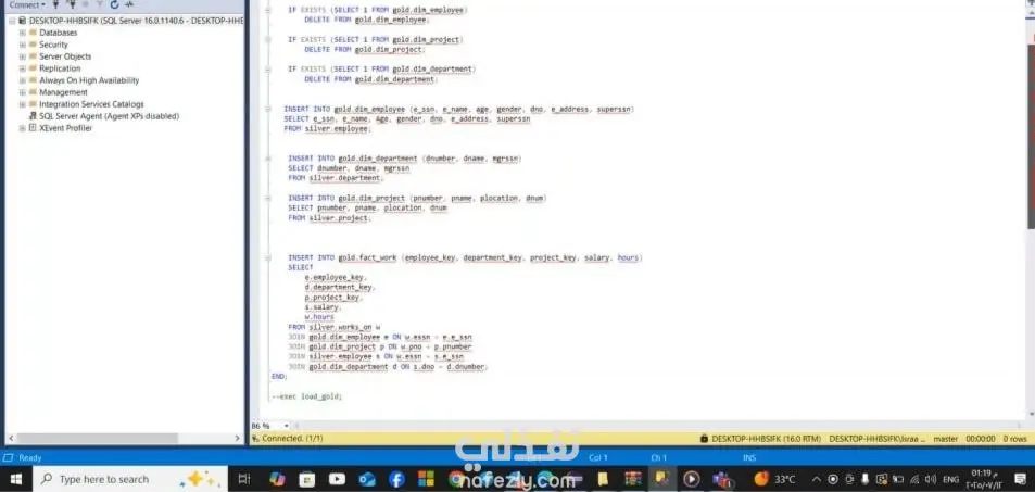 مشروع هندسي متكامل يهدف إلى محاكاة دورة حياة البيانات في الشركات الكبرى. قمت ببناء مستودع بيانات (Data Warehouse) مركزي يجمع البيانات من مصادر متعددة (مثل ملفات CSV وقواعد بيانات SQL) لتمكين اتخاذ قرارات تحليلية دقيقة. تصميم خطوط أنابيب البيانات (ETL Pipeline): استخدمت لغة Python لأتمتة عمليات استخراج البيانات (Extract)، وتحويلها (Transform) لتنظيفها من الأخطاء، ثم تحميلها (Load) في المستودع. بناء مستودع البيانات (Data Warehouse): صممت هيكل قاعدة البيانات باستخدام نماذج متقدمة (مثل Star Schema) لضمان سرعة الاستعلامات التحليلية. معالجة البيانات الضخمة: ركزت على تحسين الأداء (Performance Tuning) للتعامل مع أحجام بيانات كبيرة بكفاءة عالية، مع تطبيق مفاهيم البرمجة الكائنية (OOP) لجعل الأكواد قابلة لإعادة الاستخدام. تجهيز البيانات للذكاء الاصطناعي: قمت بهيكلة البيانات بحيث تكون جاهزة لعمليات التعلم الآلي (Machine Learning) والتحليلات المتقدمة. بعتذر على جوده الصور.