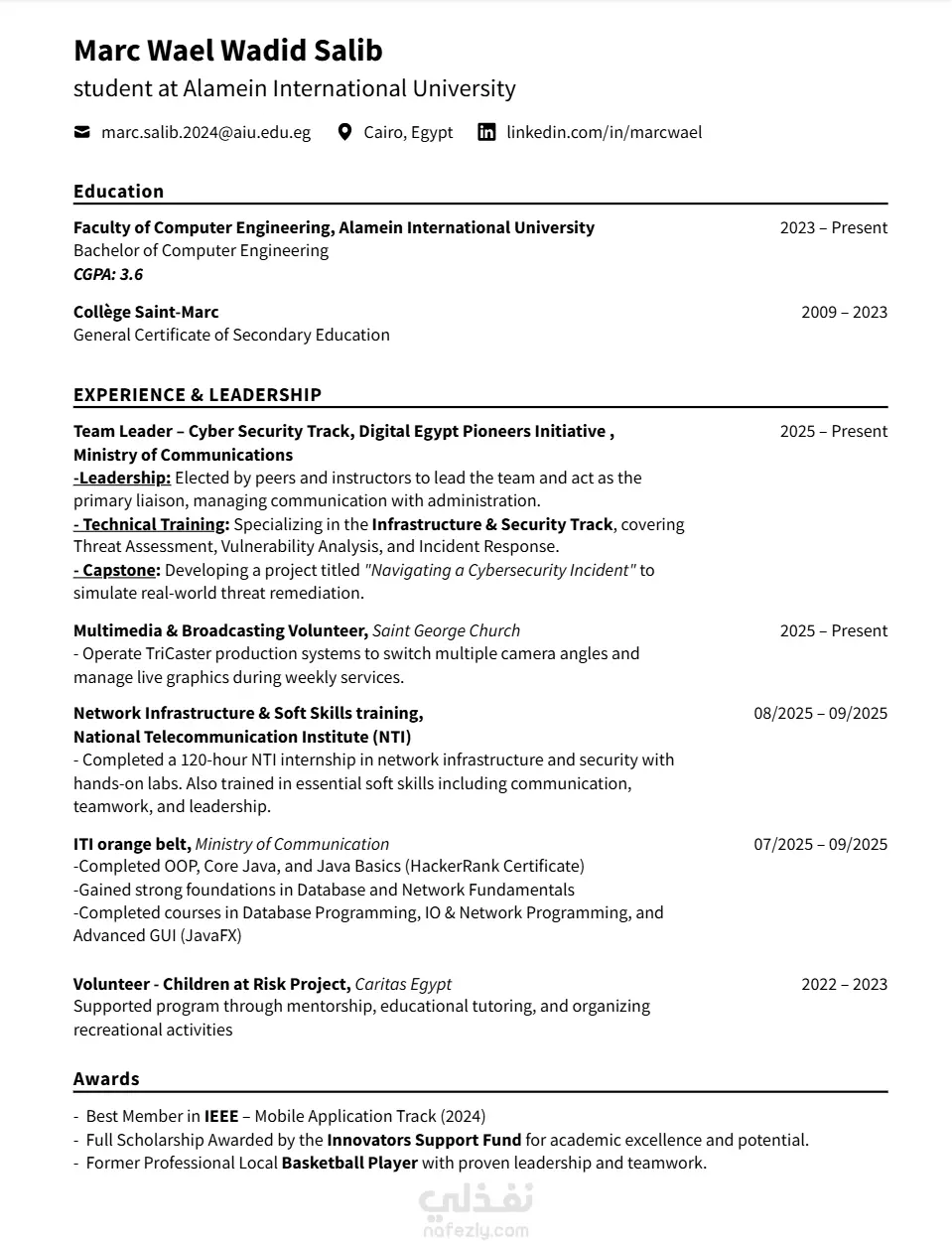 هل تريد سيرة ذاتية احترافية تضمن لك التميز وزيادة فرص قبولك في الوظائف؟ أنا متخصص في كتابة وتطوير السير الذاتية (Resume & CV) بشكل احترافي يتوافق مع متطلبات سوق العمل وأنظمة التوظيف الحديثة (ATS). أساعدك في إبراز مهاراتك وخبراتك بطريقة قوية وجذابة تجذب مسؤولي التوظيف. 🔹 ماذا أقدم؟ * كتابة Resume أو CV من الصفر * تحسين وتطوير السيرة الذاتية الحالية * إعادة صياغة المحتوى بشكل احترافي * تصميم أنيق ومنظم وسهل القراءة * تخصيص السيرة الذاتية حسب الوظيفة المطلوبة * تحسين الكلمات المفتاحية لتناسب أنظمة ATS 🔹 لماذا تختارني؟ * فهم عميق لسوق العمل ومتطلبات التوظيف * خبرة في المجال الأكاديمي والتقني * سرعة في التنفيذ مع جودة عالية * اهتمام بأدق التفاصيل 🎯 هدفي هو مساعدتك في تقديم نفسك بأفضل صورة ممكنة لزيادة فرصك في الحصول على مقابلات عمل. 📩 تواصل معي قبل الطلب لمناقشة تفاصيلك!