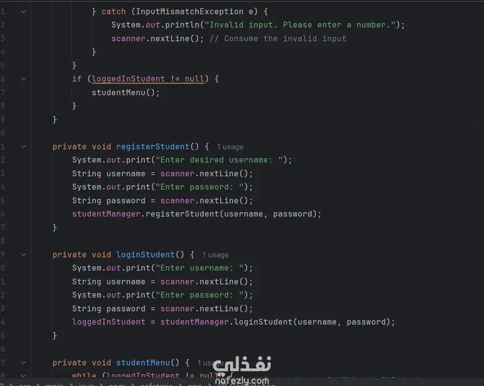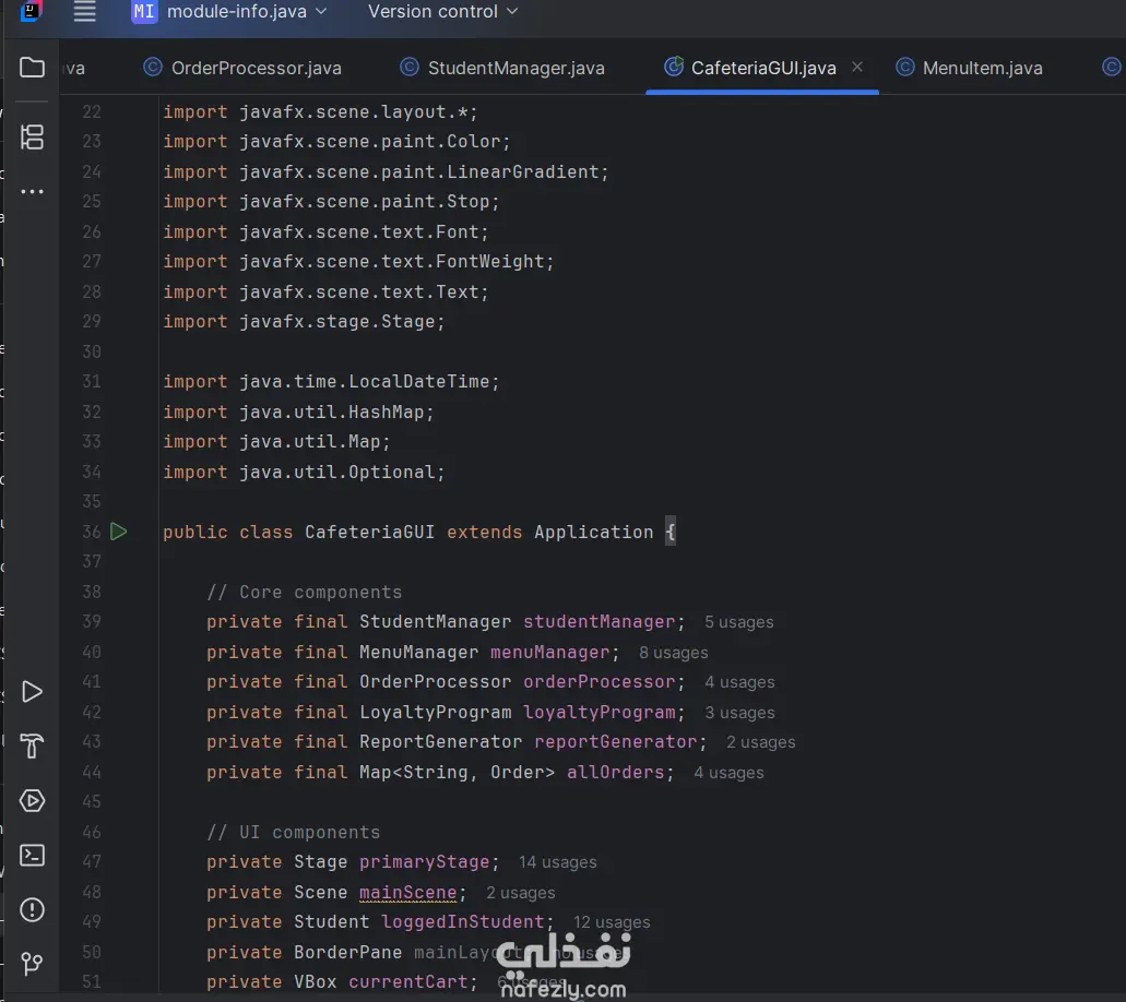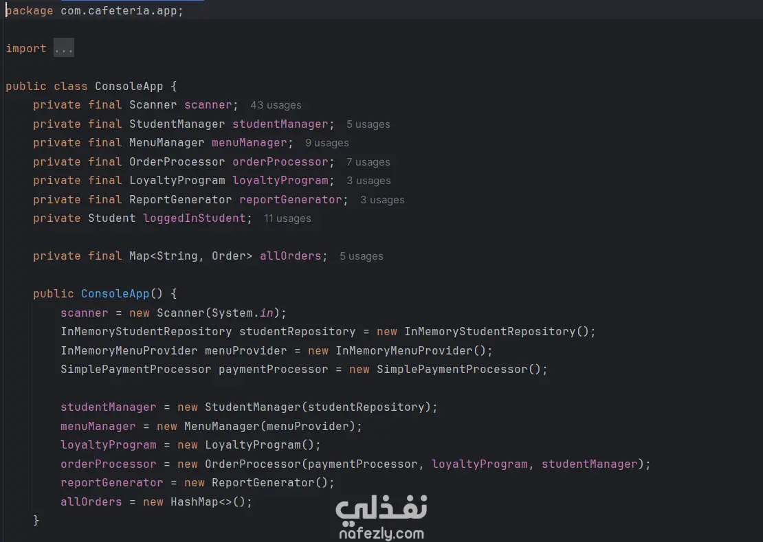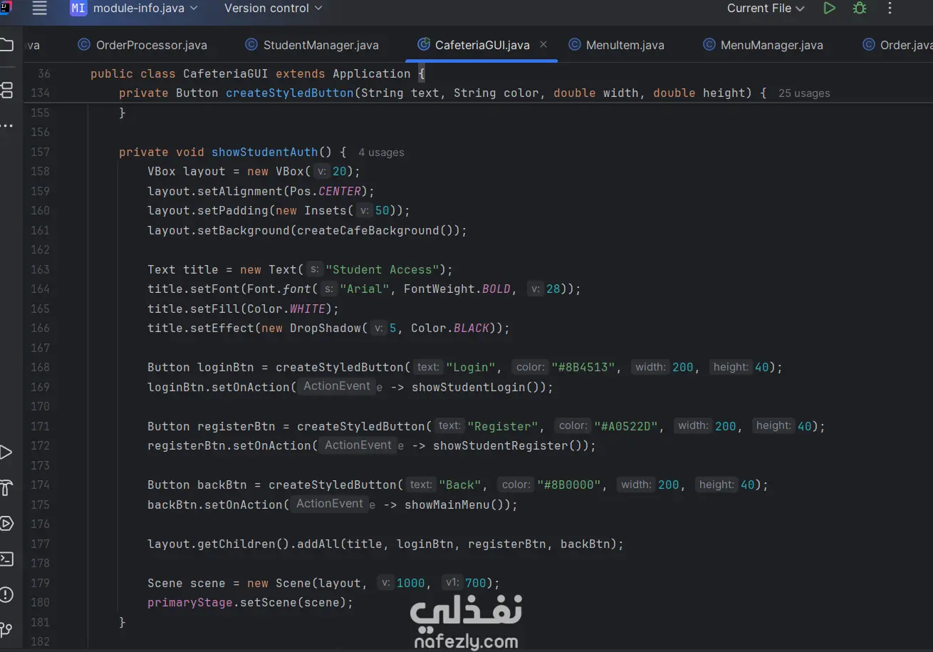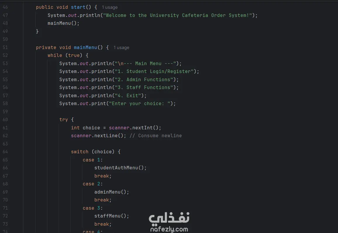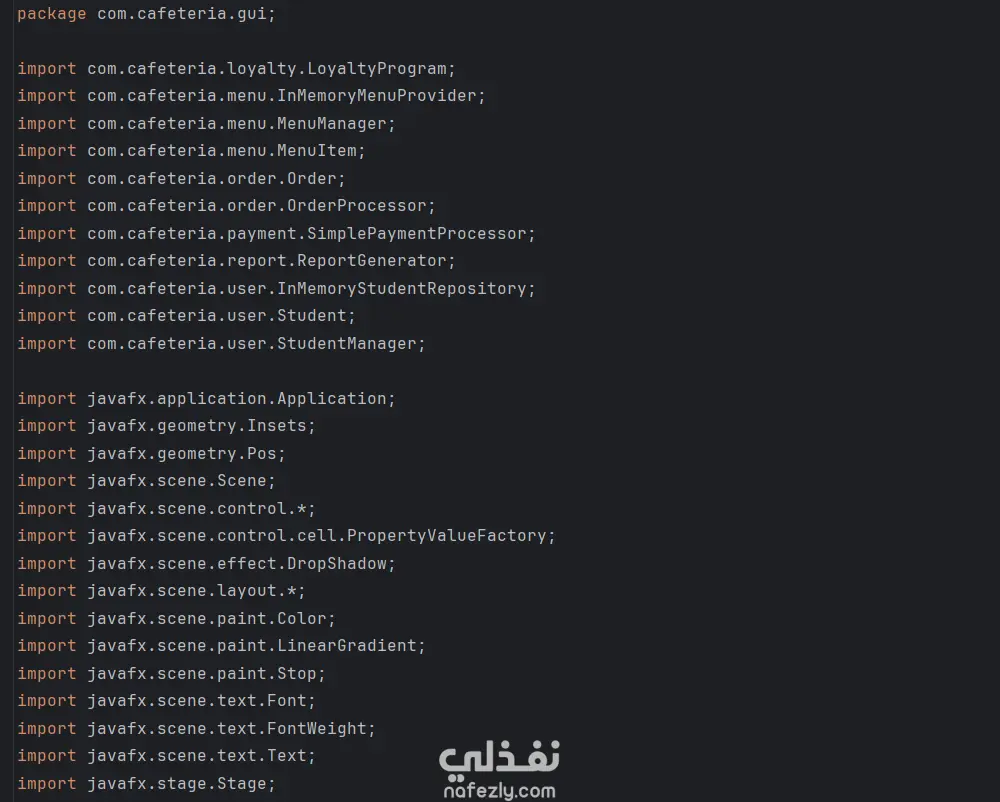 University Cafeteria Management System باستخدام Java